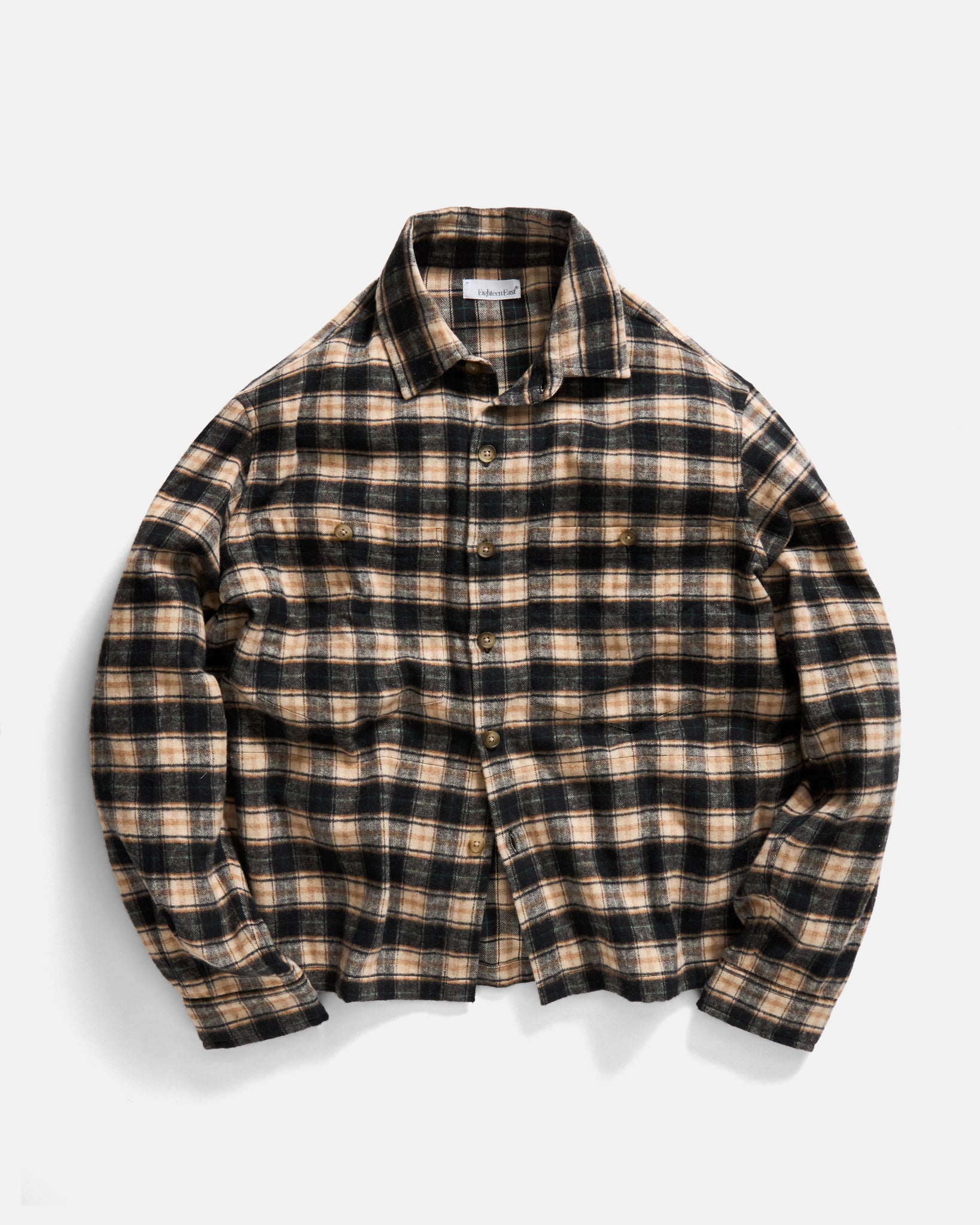 GALE BOX SHIRT - BLACK / ECRU / BRITISH KHAKI / GRASS BRUSHED COTTON FLANNEL