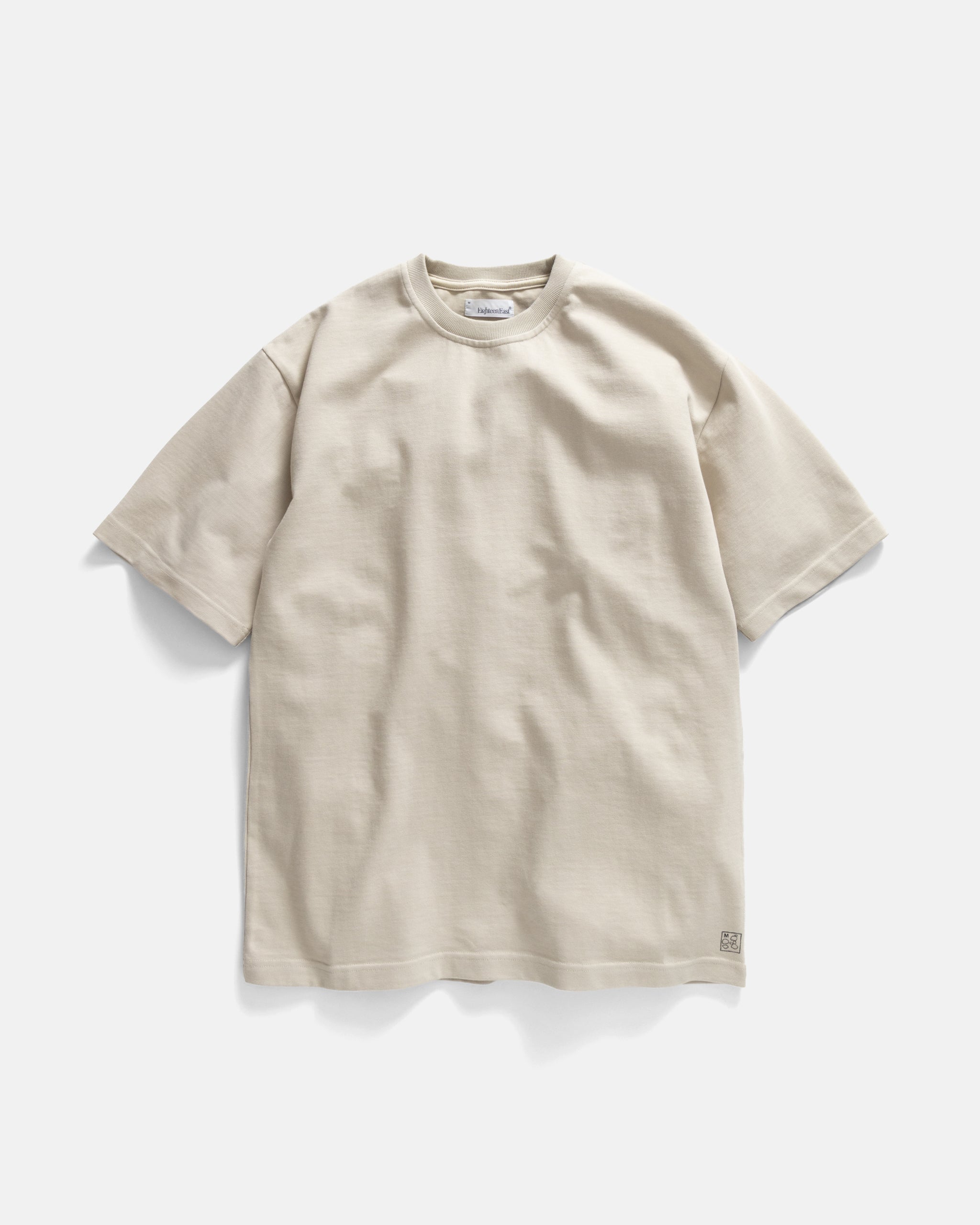 Drawing fit details from some of our favorite 90's tees (including the A# Rae), The Moore is cut with a slightly longer than normal sleeve (a huge change from basically every other blank tee), slightly relaxed body with traditional, uncropped length. It features a closely cut rib collar and hand block printed size marking on the left hem.