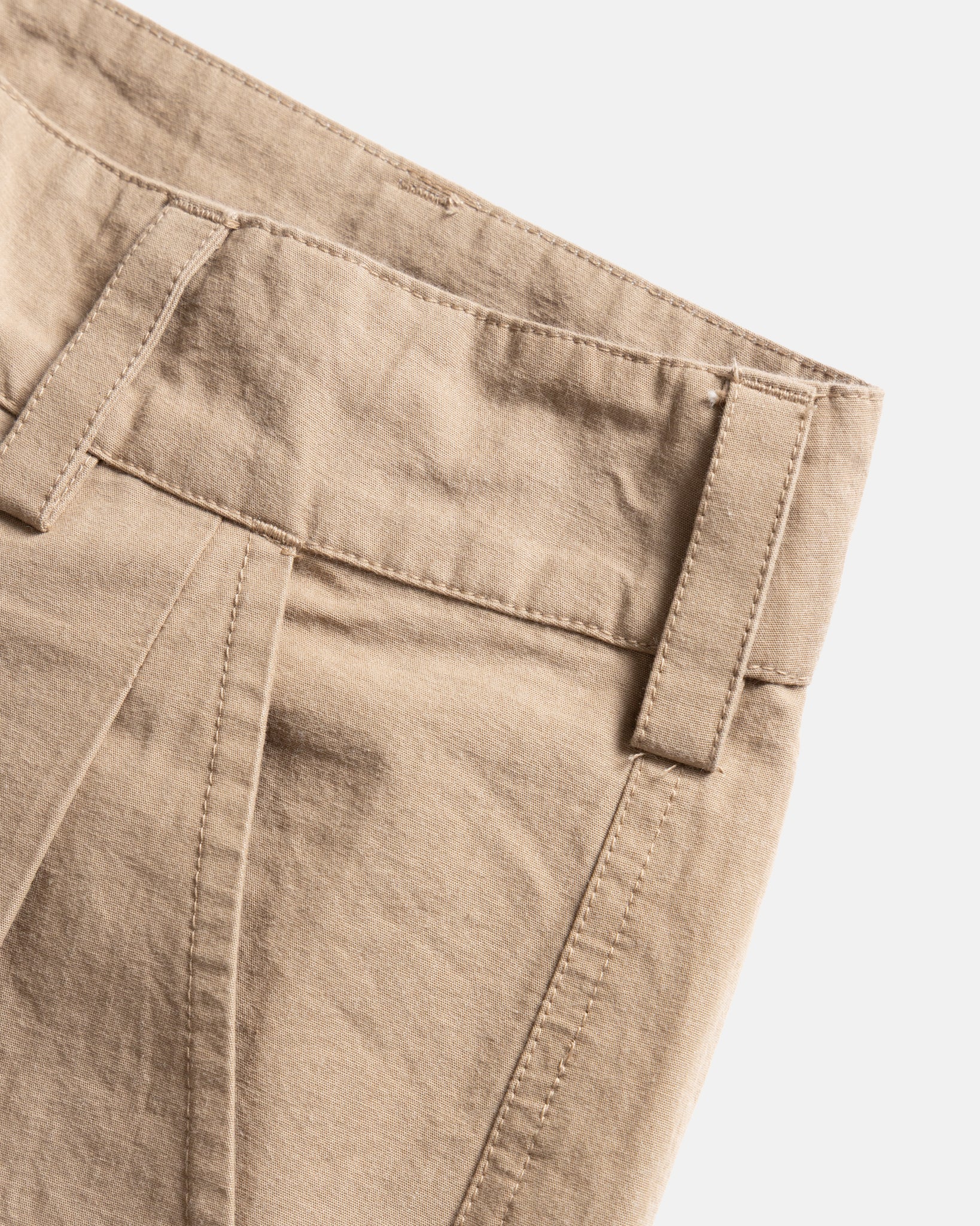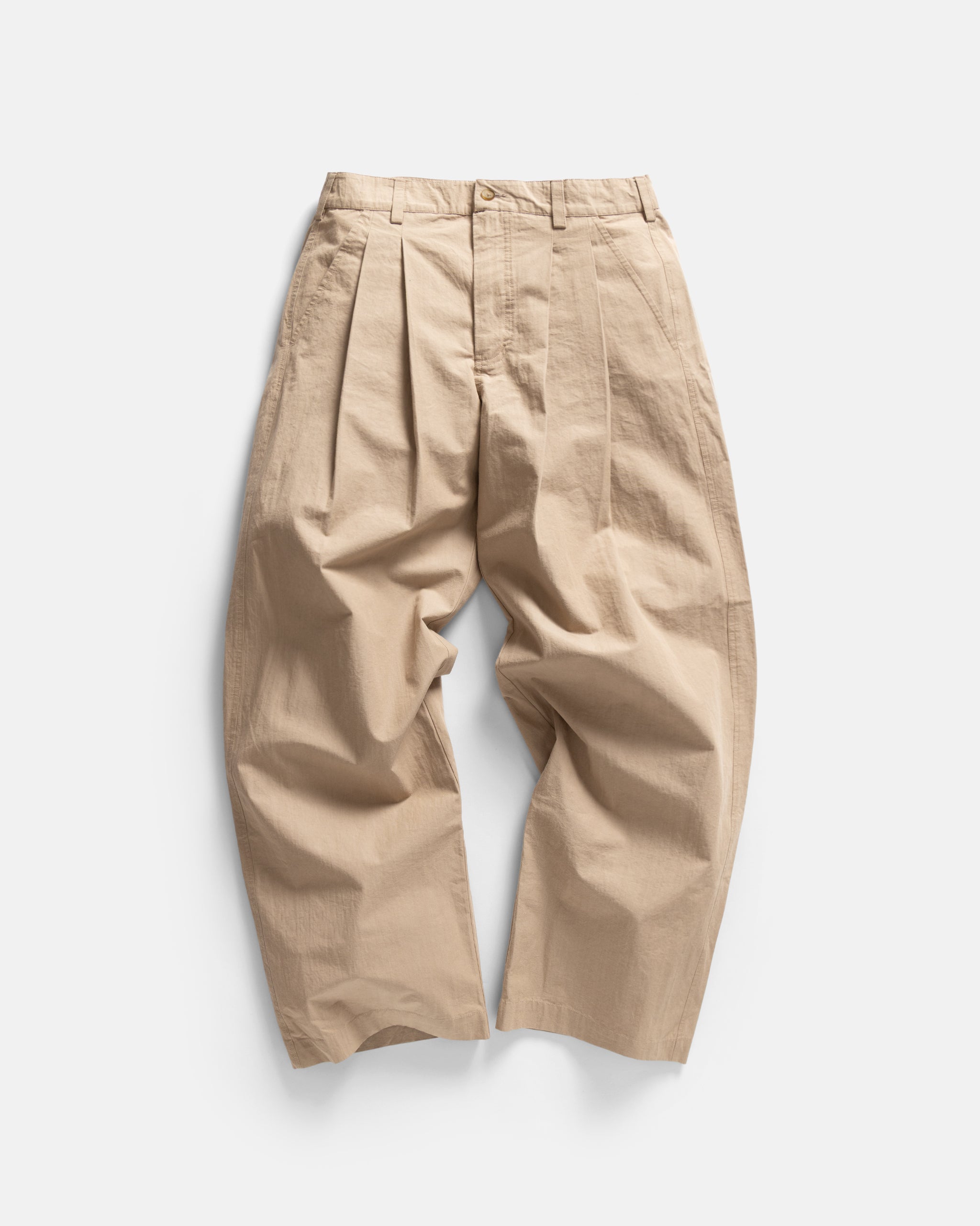 TINO DOUBLE PLEATED WIDE PANT - FADED KHAKI COTTON PLAINWEAVE