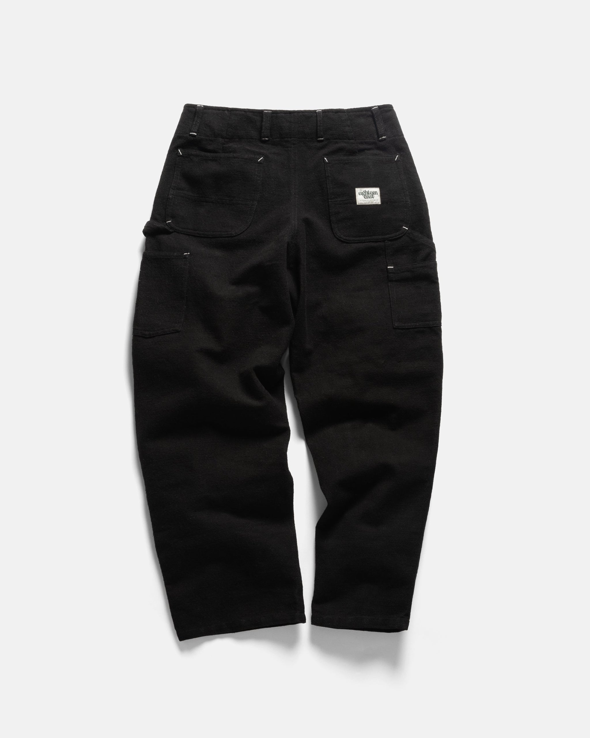 The Eli is a fully handmade overhaul of our popular Studio double knee.  Cut from our handspun cotton duck, the Eli features a few new hidden storage locations and hand-embroidered reinforced knee panelling.  Other details of note include our new compass "e" shanks at the waist, contrast bartacks throughout and an easy straight fit.
