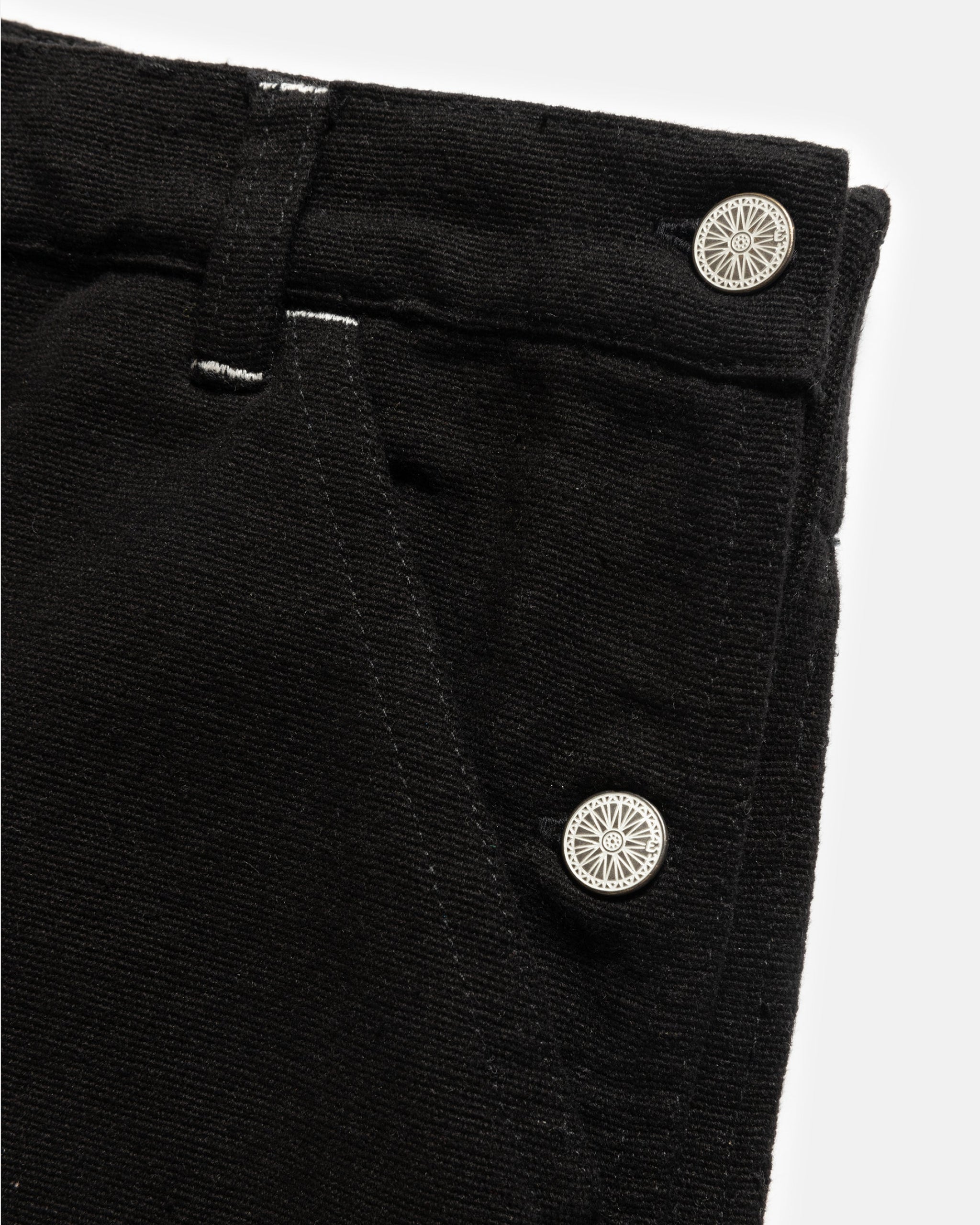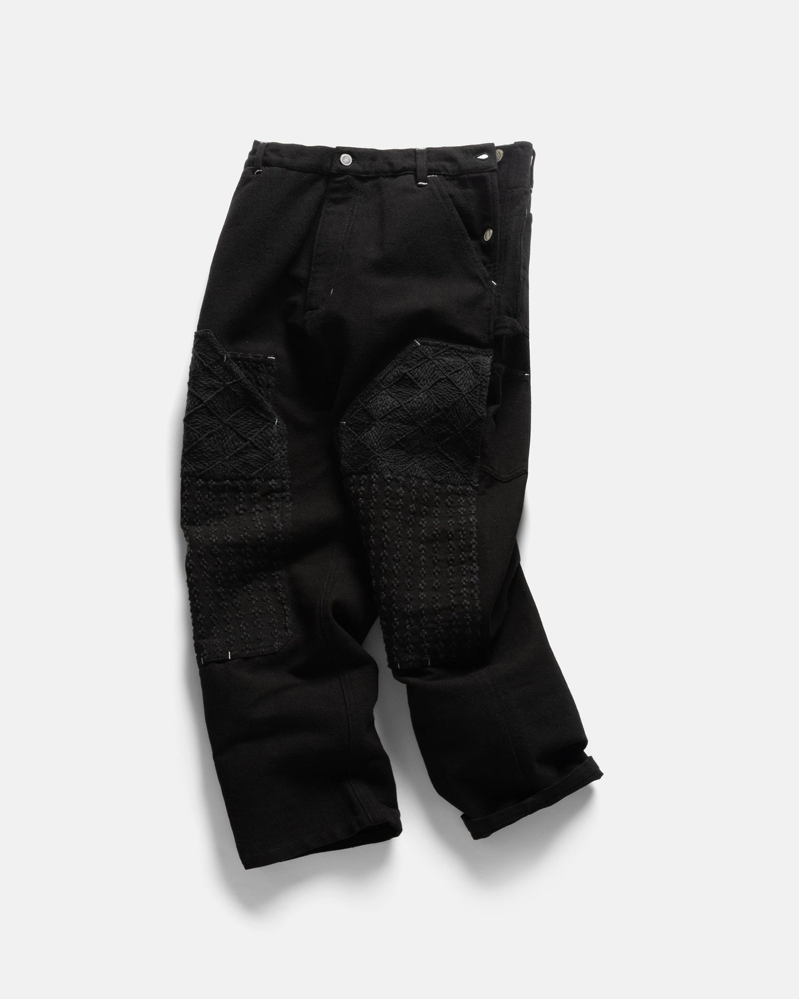 ELI HAND-EMBROIDERED DOUBLE KNEE WORK PANT - BLACK HANDSPUN COTTON CANVAS