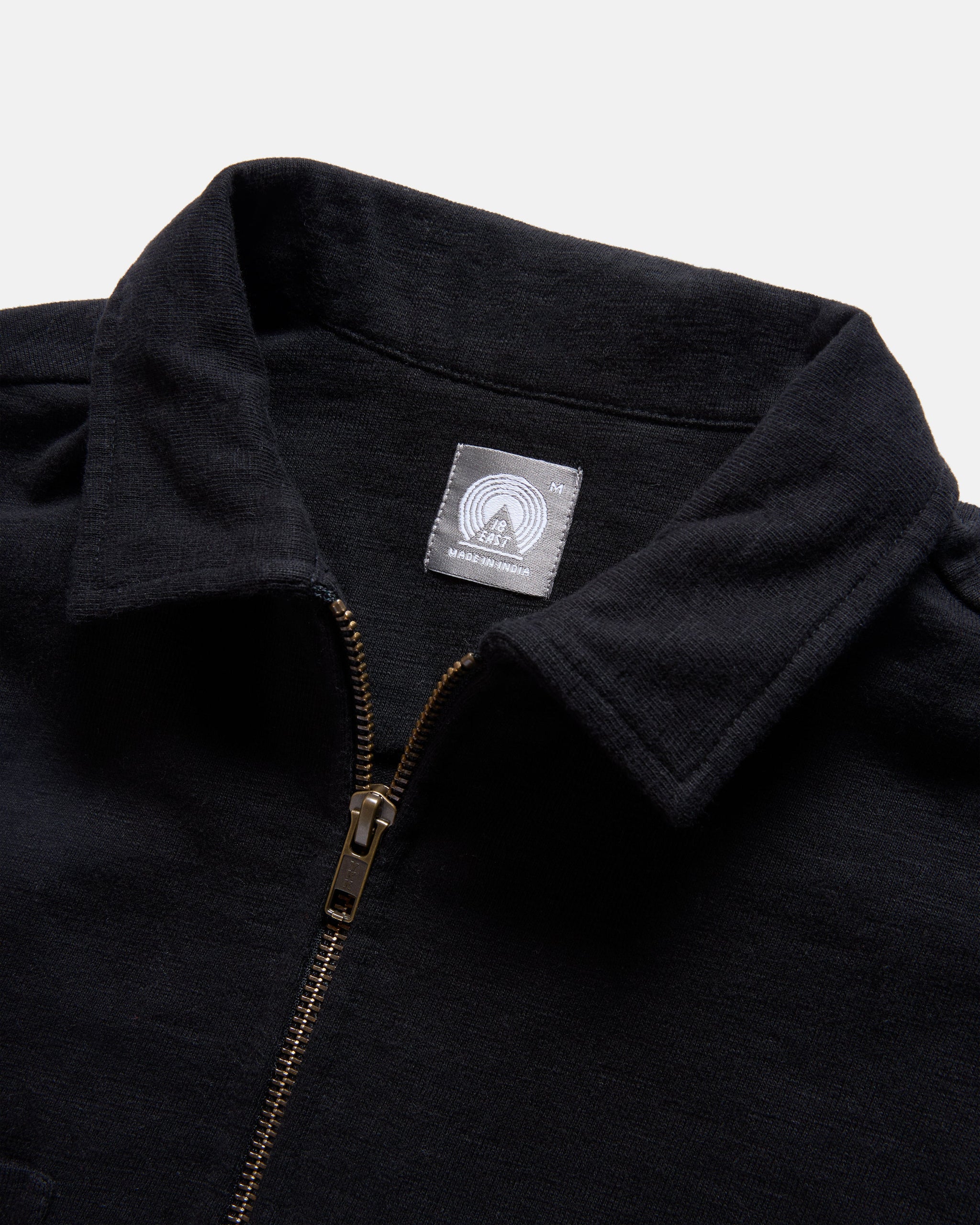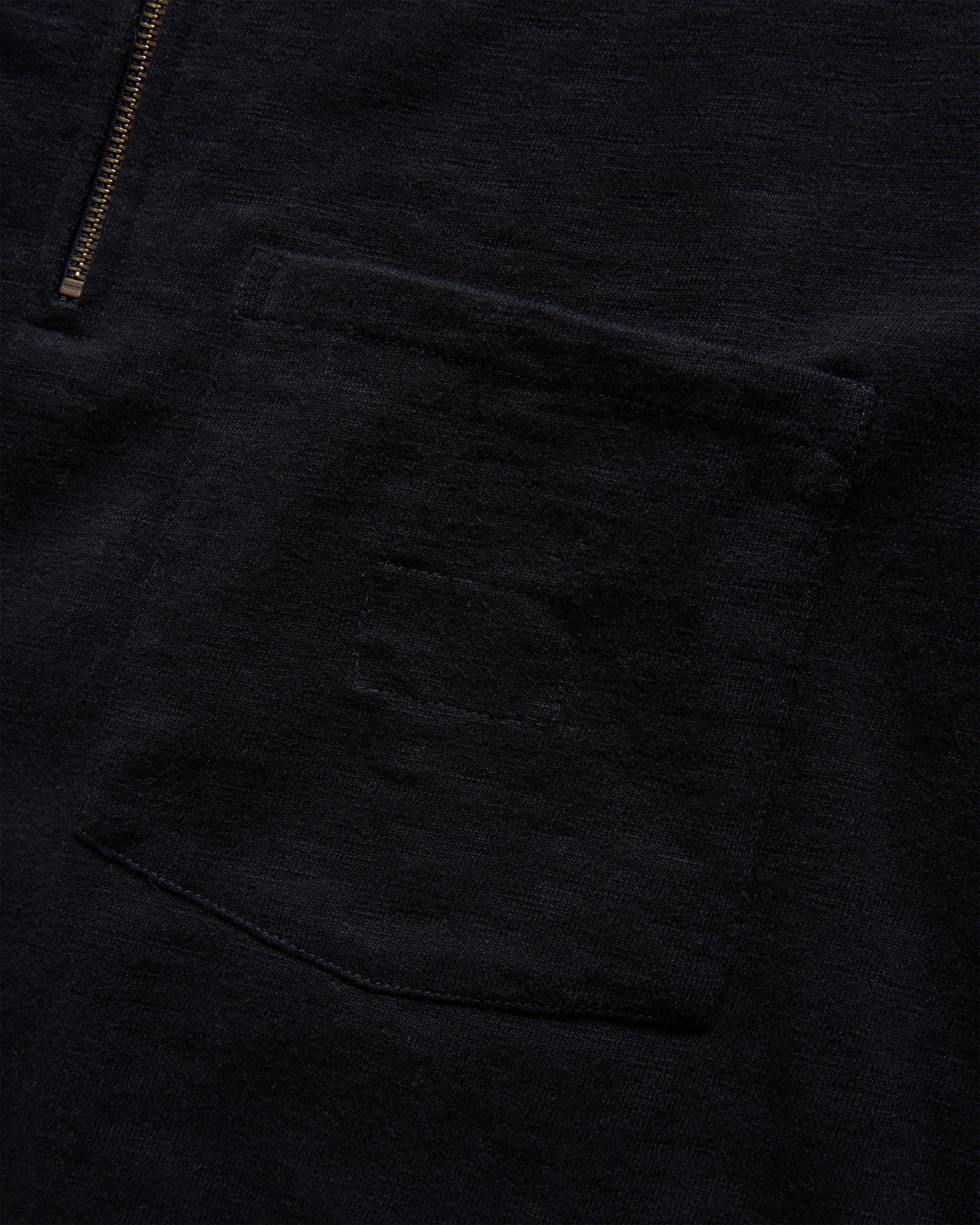 Our take on an enduring SF workwear staple, the Hollow 1/4 zip is now available in one of our favorite knitted fabrics - our heavyweight slub jersey. With two mitre chest pockets (our Spiral 'E' workwear label is hidden at the inside left one) and an even, vented hem, the Hollow polo is an excellent all-season tee alternative.