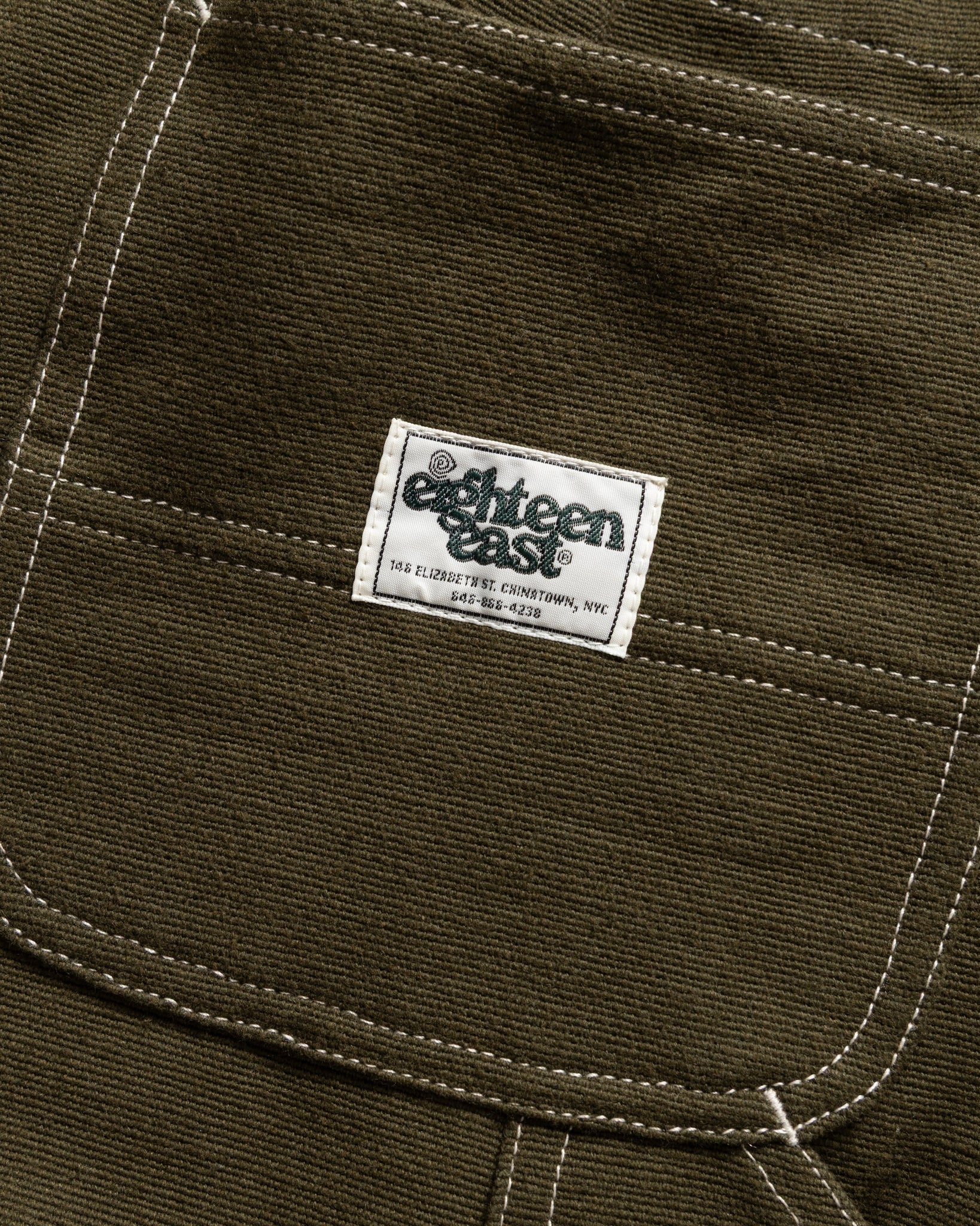 The Eli is a fully handmade overhaul of our popular Studio double knee. Cut from our handspun cotton duck, the Eli features a few new hidden storage locations and hand-embroidered reinforced knee panelling. Other details of note include our new compass "e" shanks at the waist, contrast bartacks throughout and an easy straight fit.