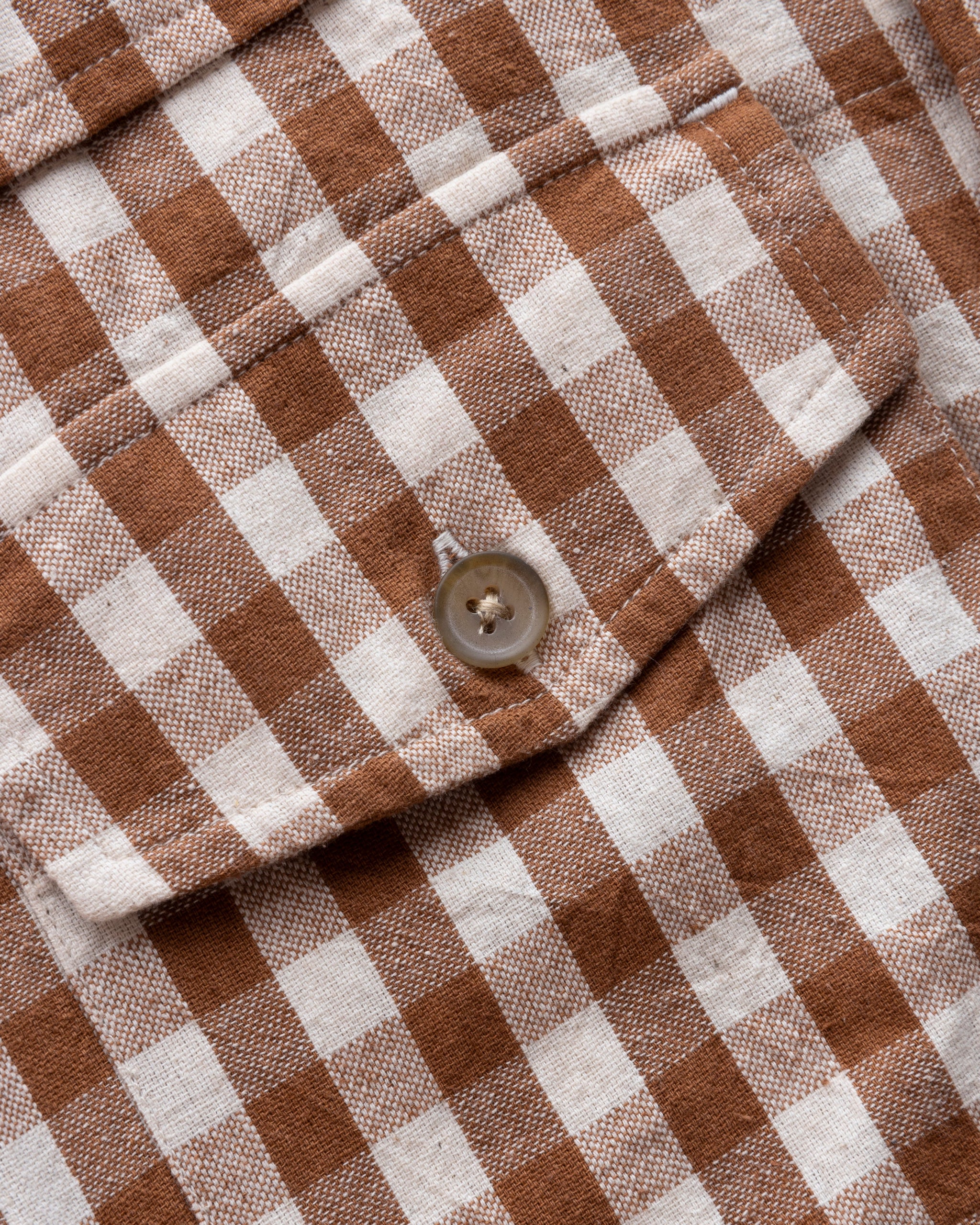SS CAM SHIRT - ECRU / BRONZE HANDWOVEN COTTON GINGHAM
