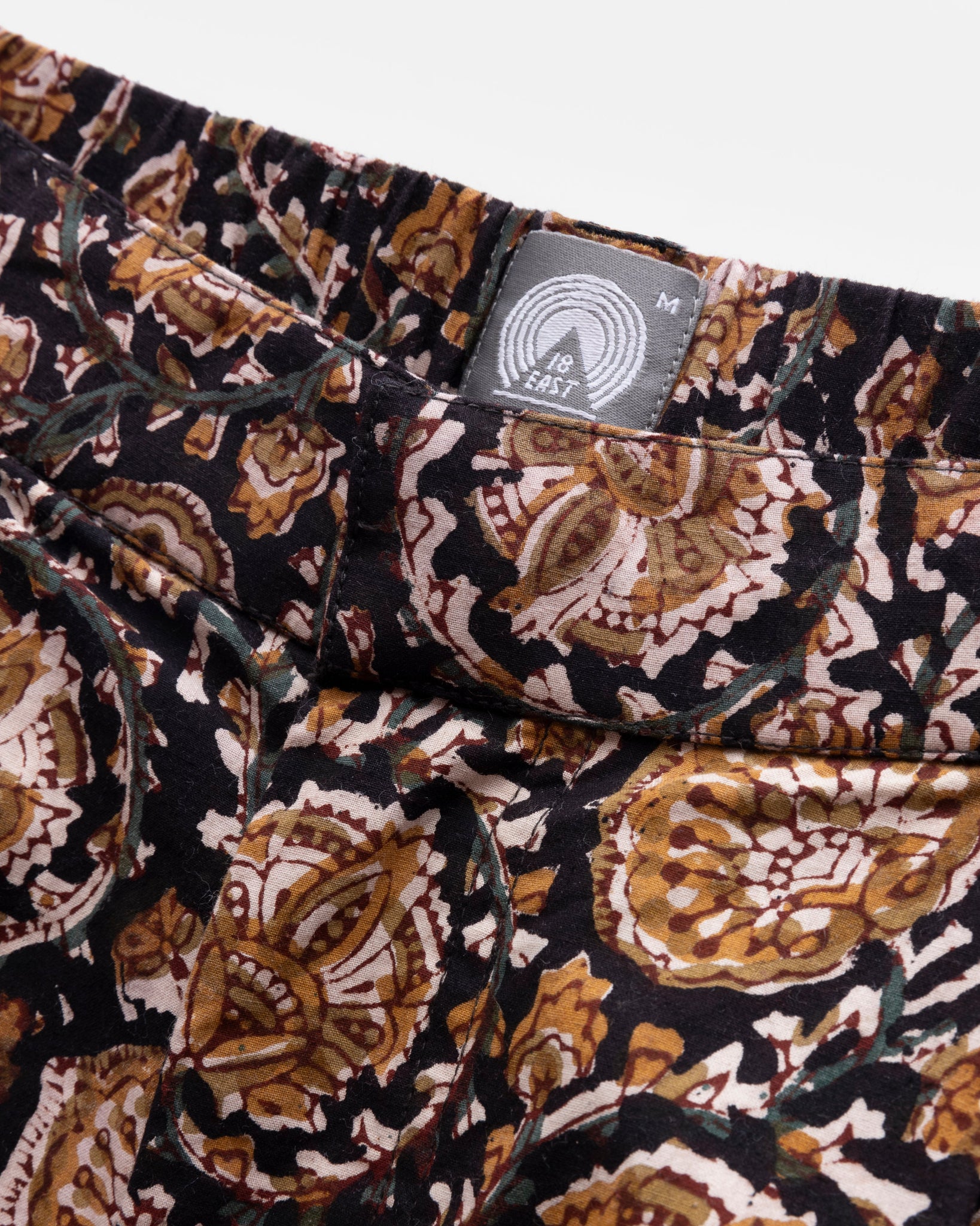 EMERY PLEATED BIG SHORTS - BLACK / SAGE / KHAKI BAGRU PRINTED COTTON