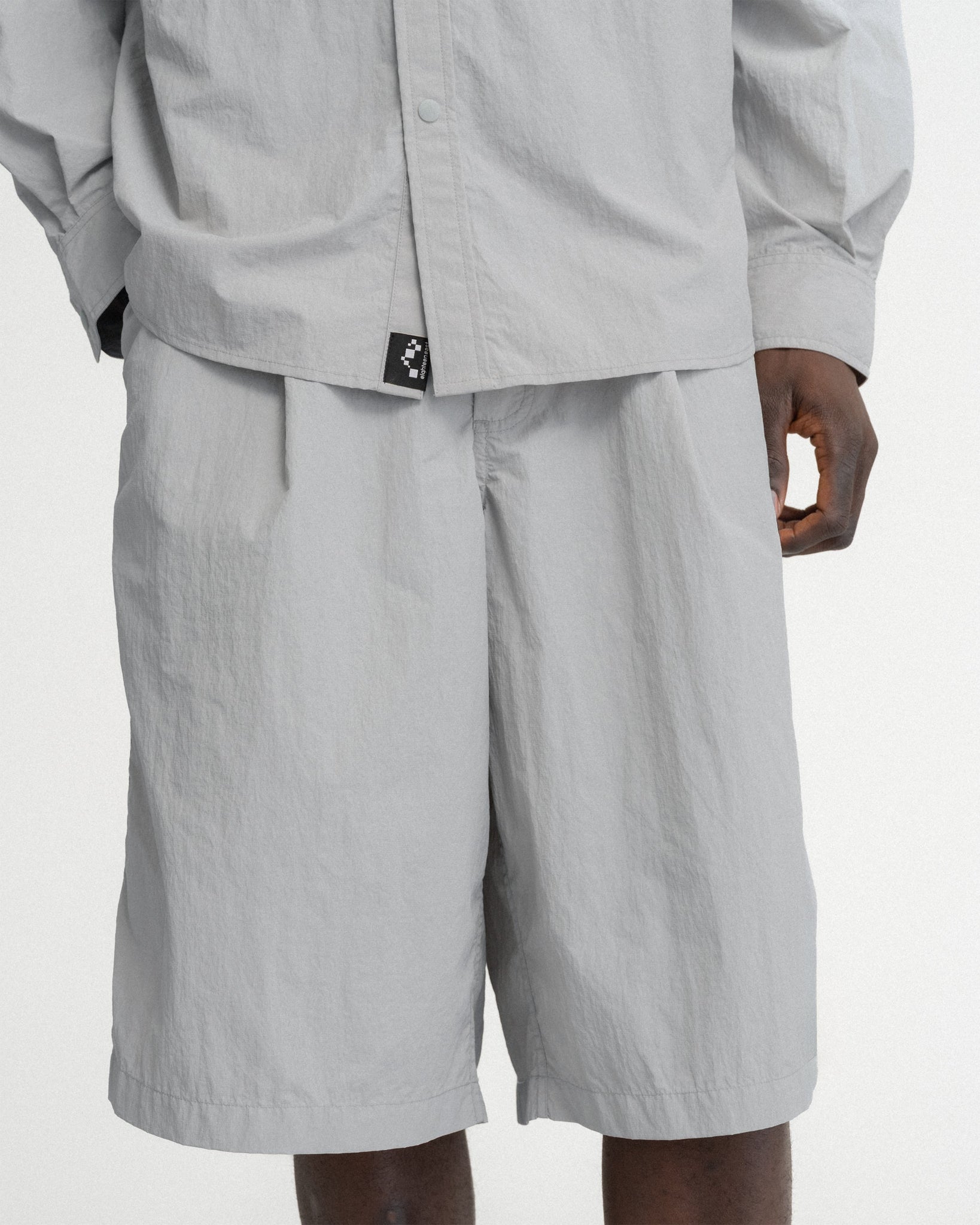 EMERY PLEATED BIG SHORTS - FOG GRAY FEATHERWEIGHT MICRO RIPSTOP NYLON
