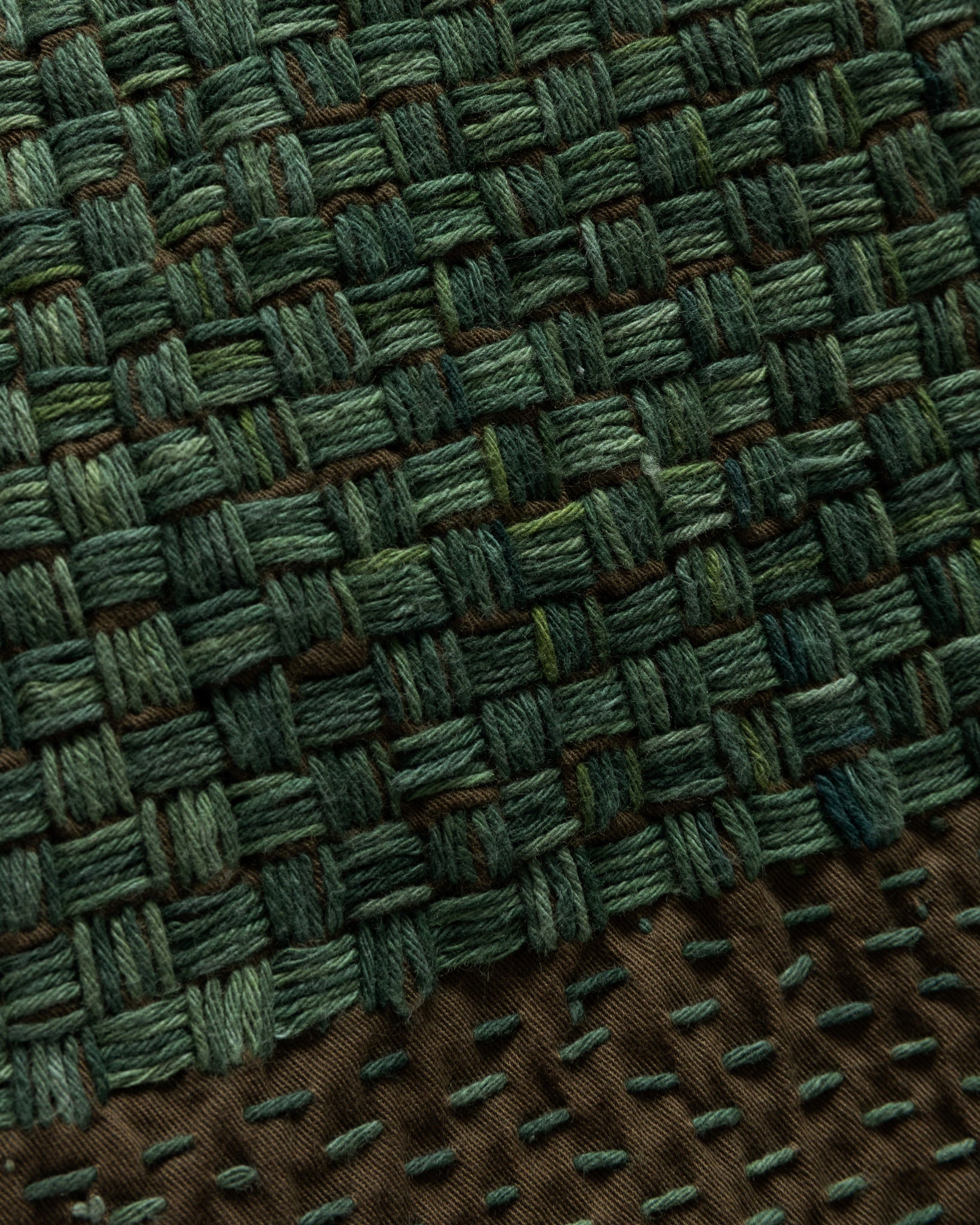 Proudly made in India from a 100% cotton canvas hand embroidered with naturally spaced-dyed cotton yarn.