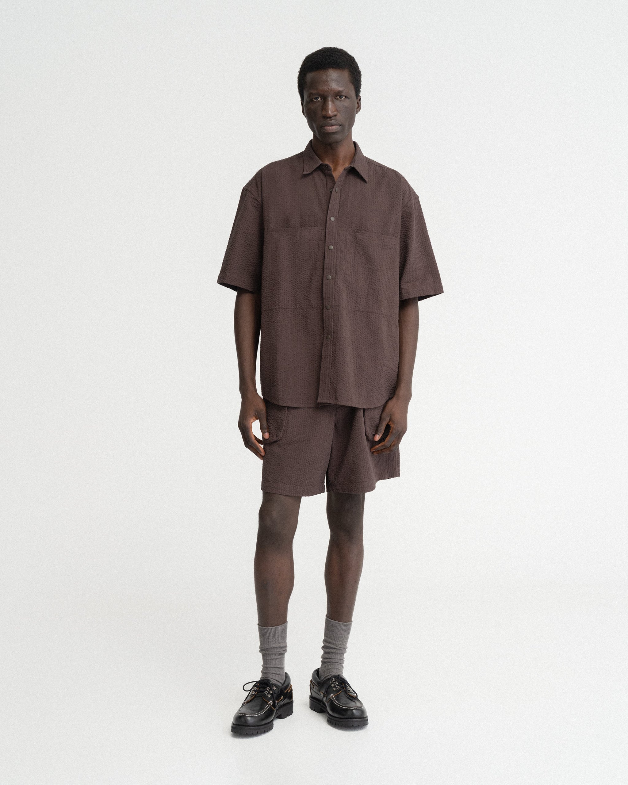 VETTI UTILITY SHORTS - TONAL FONDENTE COTTON SEERSUCKER