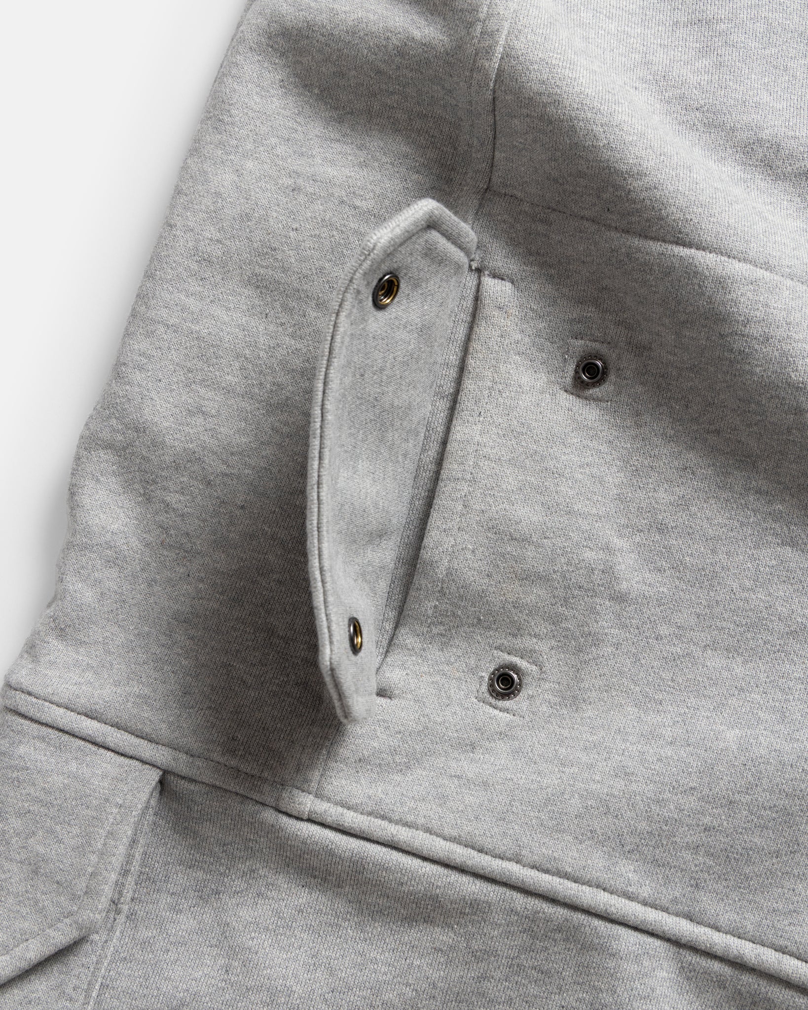 Khalil has been pushing us to run gray heather sweats for ages so these are for him. Just like our Kaden balloon pant but cut from our signature 19oz. all cotton terry, with reinforced metal snaps instead of buttons. They feature a fuller-cut, balloon-style silhouette through the thigh and calf, while maintaining a size-correct waist.