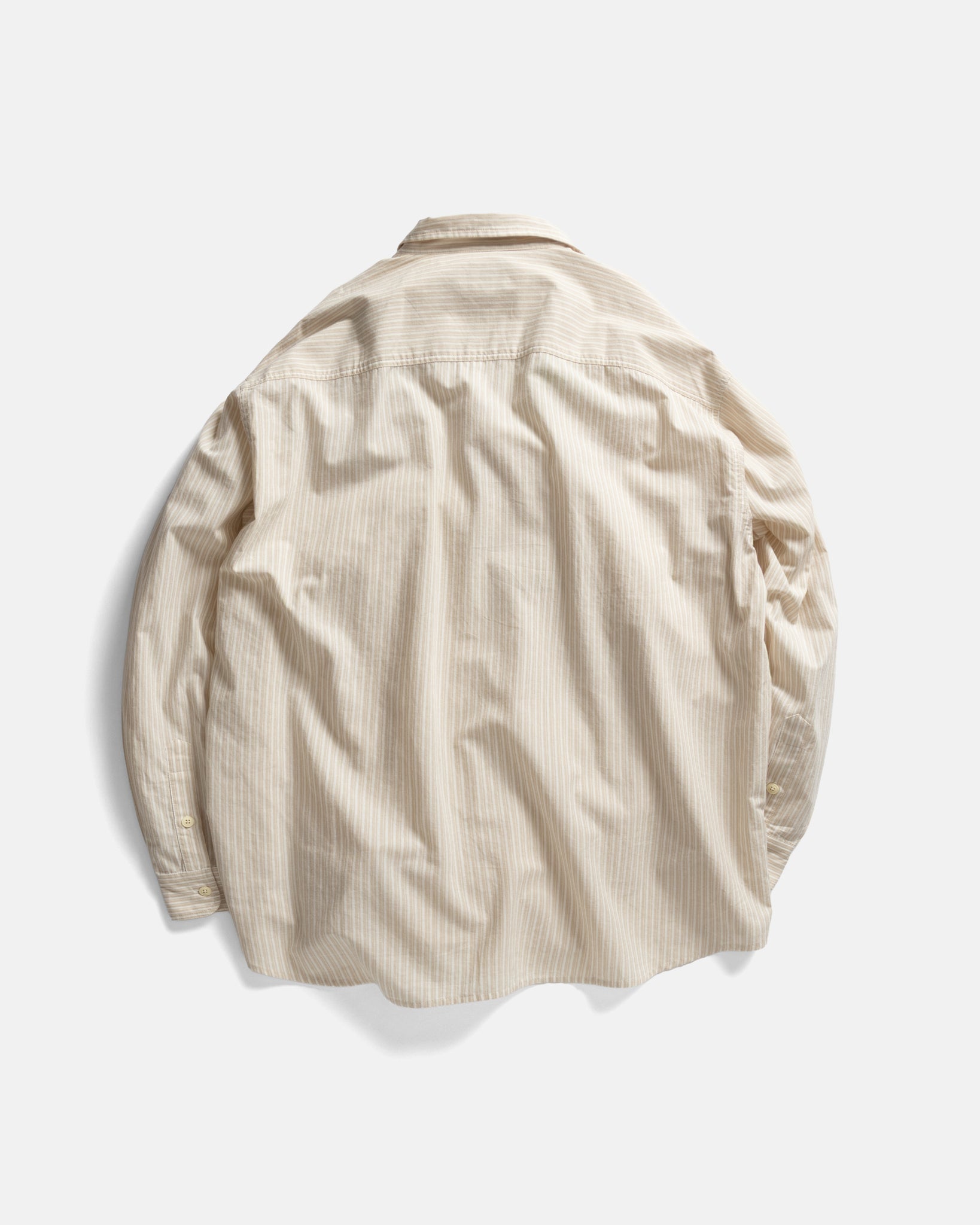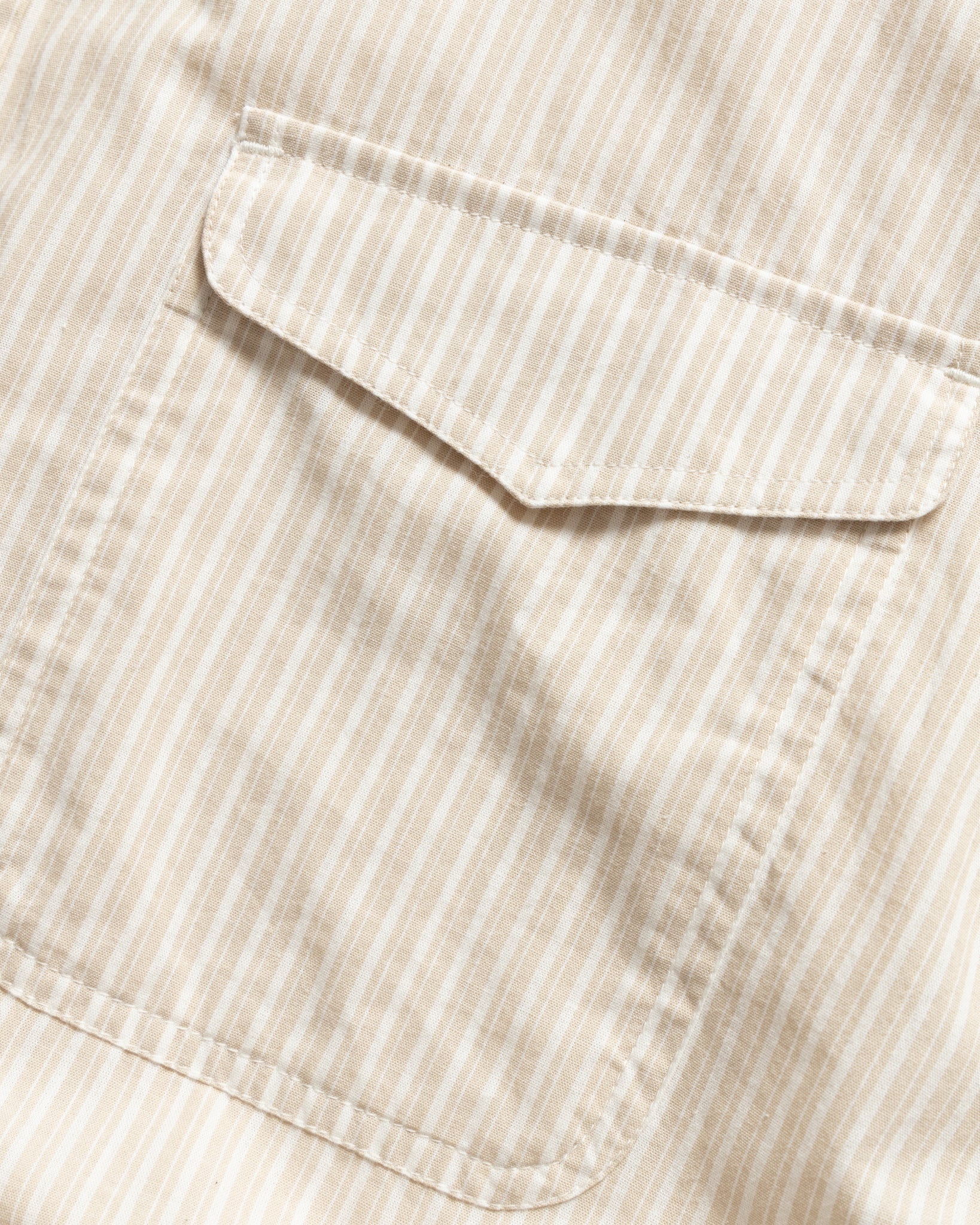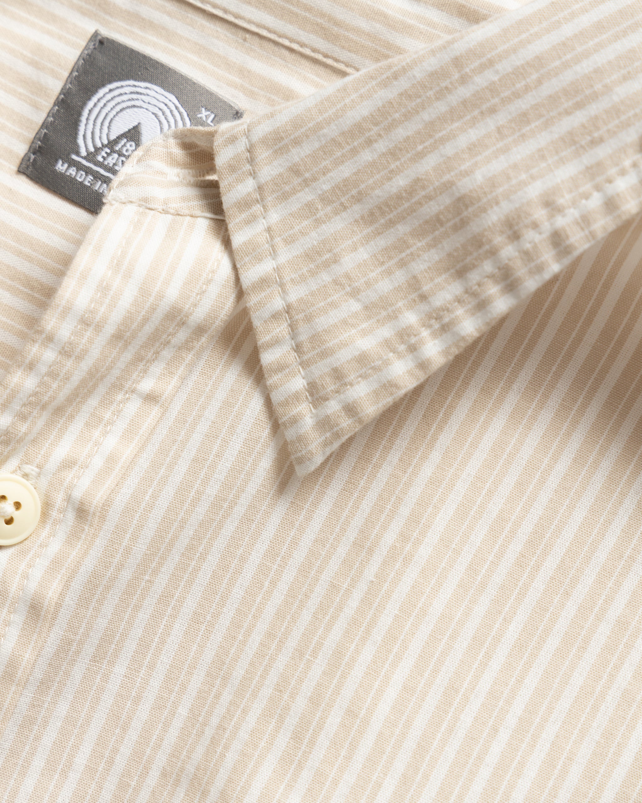 LOCUST SOFT POINT COLLAR SHIRT - TRAVERTINE / WHITE ASYMMETRIC STRIPED COTTON POPLIN