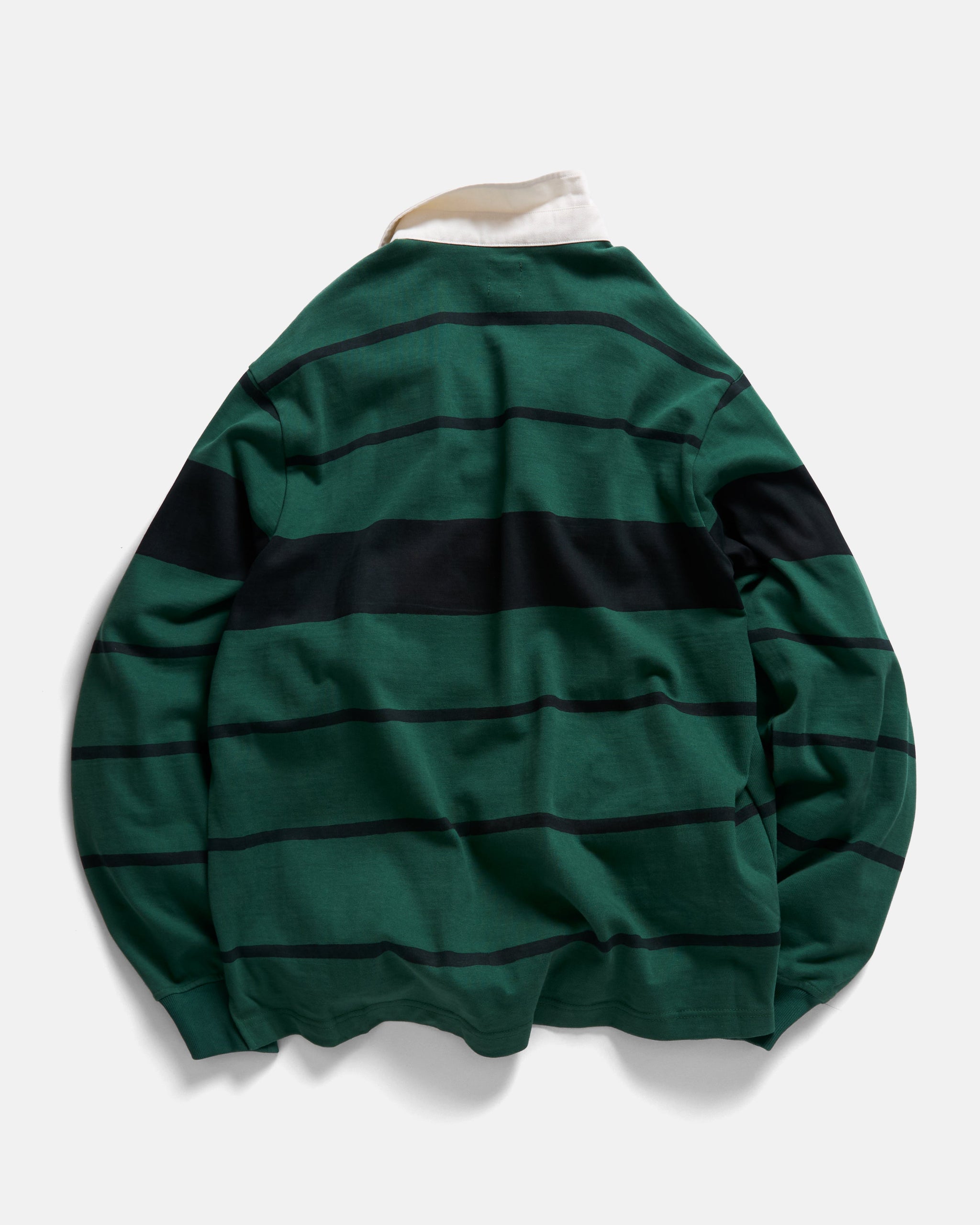 Cut from a gutsy 12.25 oz cotton with hand block-printed stripes and a throwback chest embroidery, we wanted the Pinewold rugby to feel like a camp staff shirt from the 80's that someone discovered at Old Gold or Battery Street Jeans - An all time vintage find. It features a single-piece woven twill collar, continuous “Canterbury” placket, and 1x1 knit ribbed cuffs.