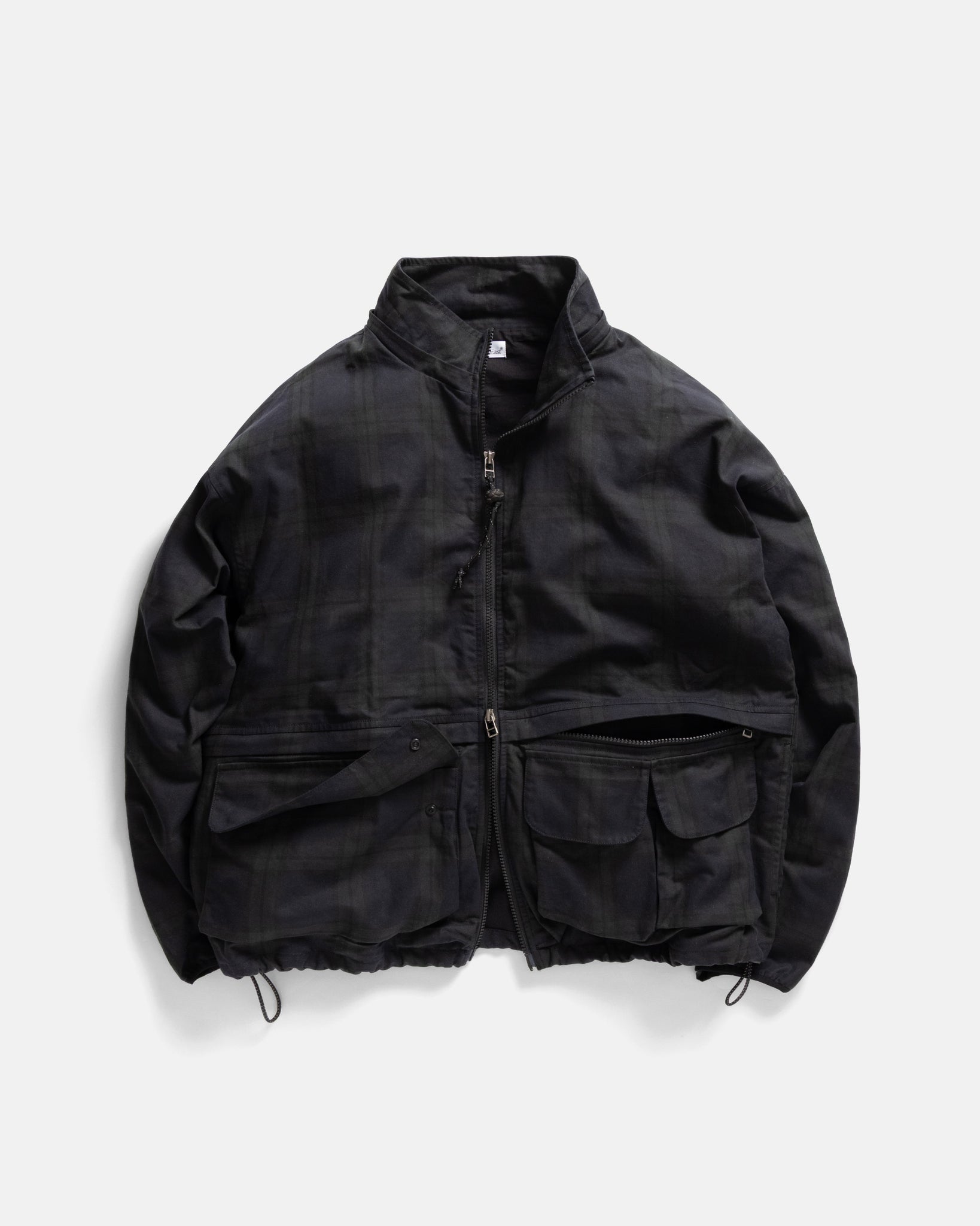 "The Banks in this subtly striking waxed cotton Blackwatch is probably my favorite garment idea of 2025. It's a streamlined but prolific pocket configuration (now with hidden side entry pockets at the side seams) makes it ideal for traveling and the zip-off, removable hood now optimizes the jacket for any weather condition." - The Management