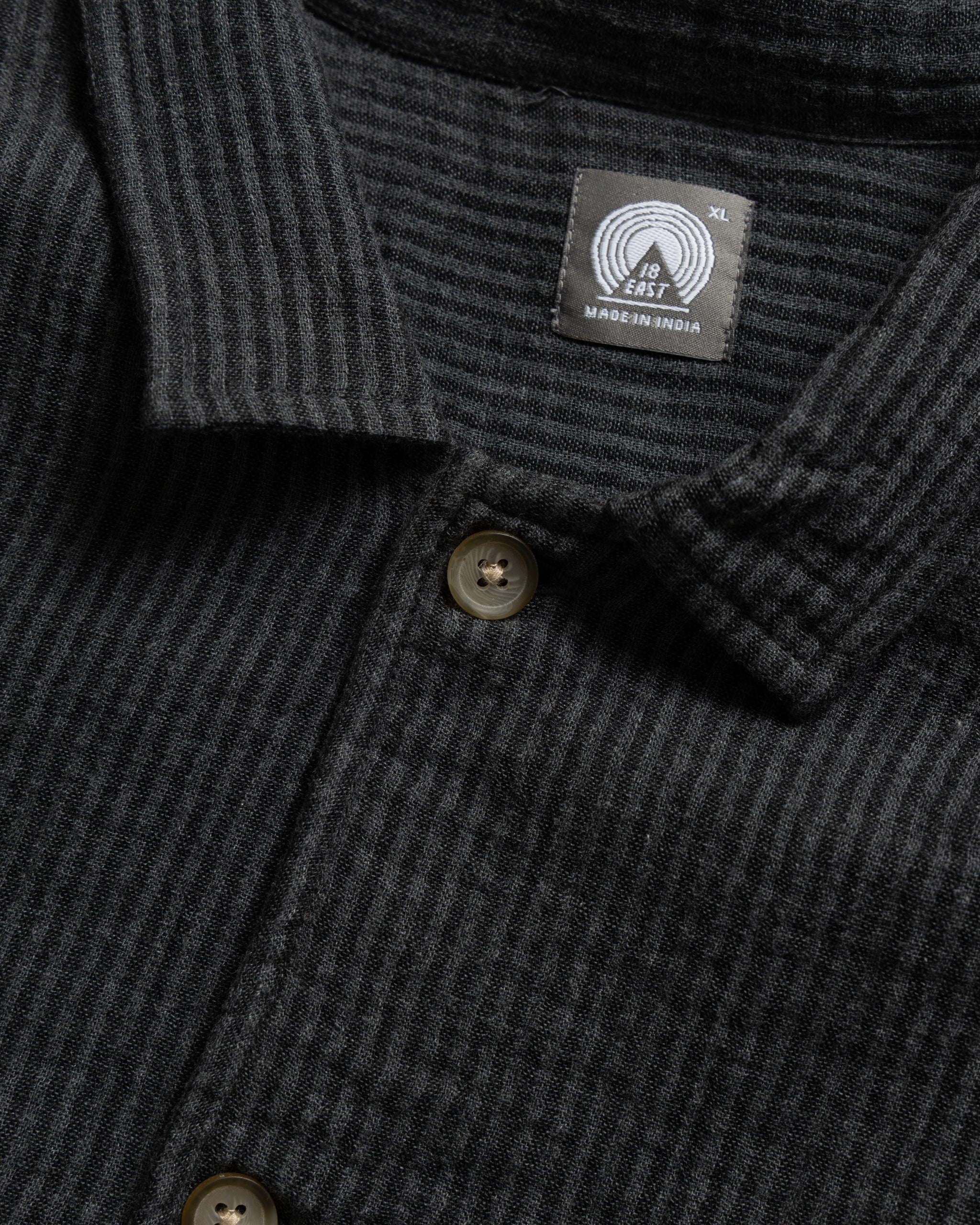 Proudly made in India from a wonderfully soft, light and warm cotton double gauze that is striped on the face and solid on the inside.
