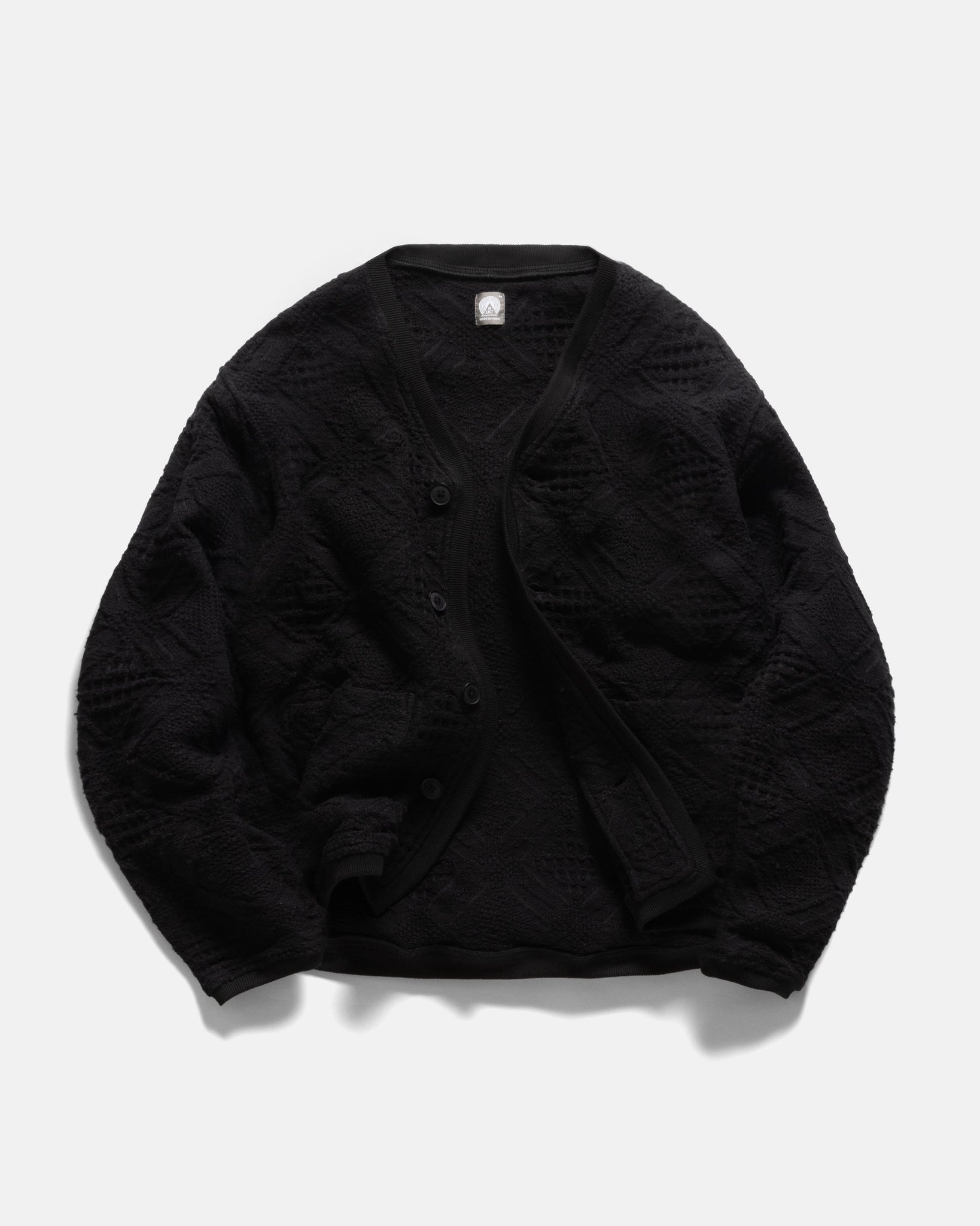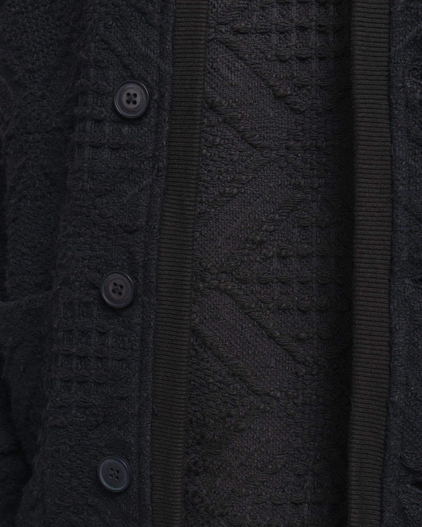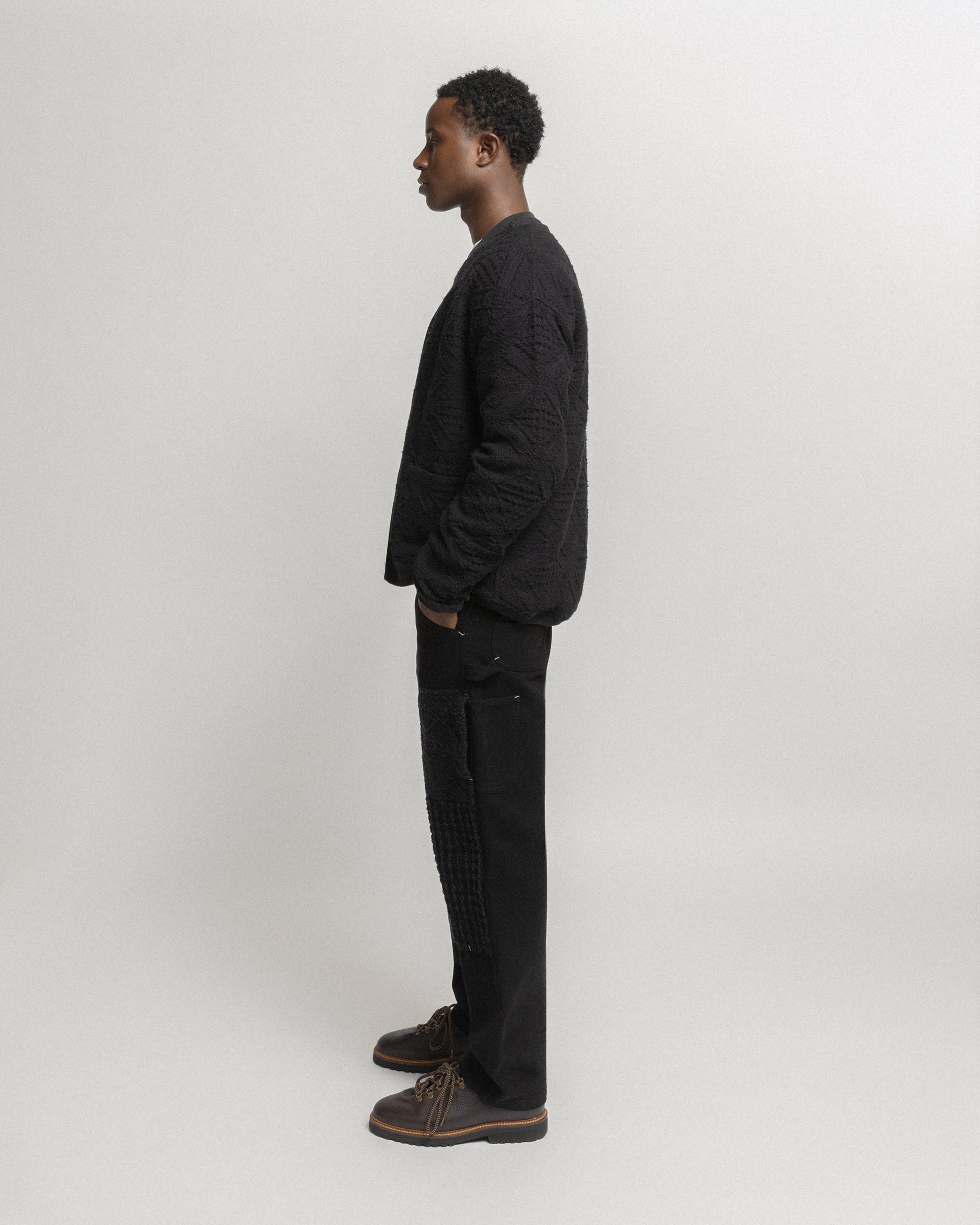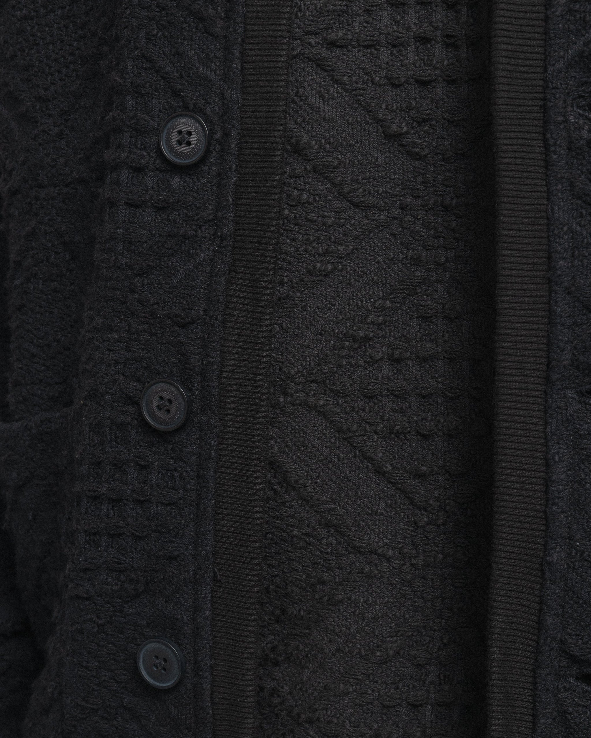 FOLA V-NECK CARDIGAN - BLACK HANDLOOM COTTON BLANKETING