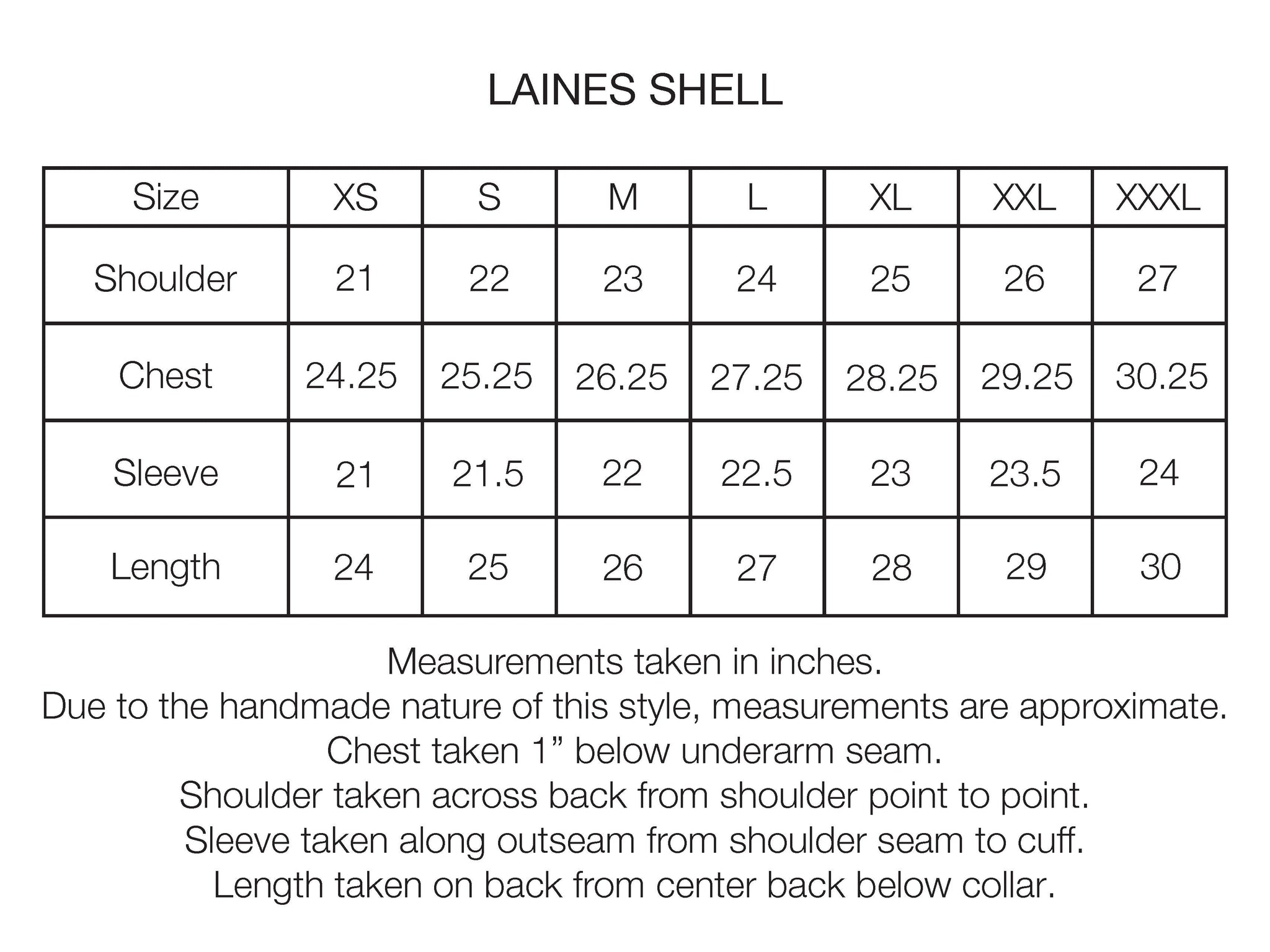 "Inspired by a photo of one of my dearest old camp friends, the Laines shell is a nod to bold rain gear that kept us all dry through Fairlee's sporadic summer showers." - Kenny