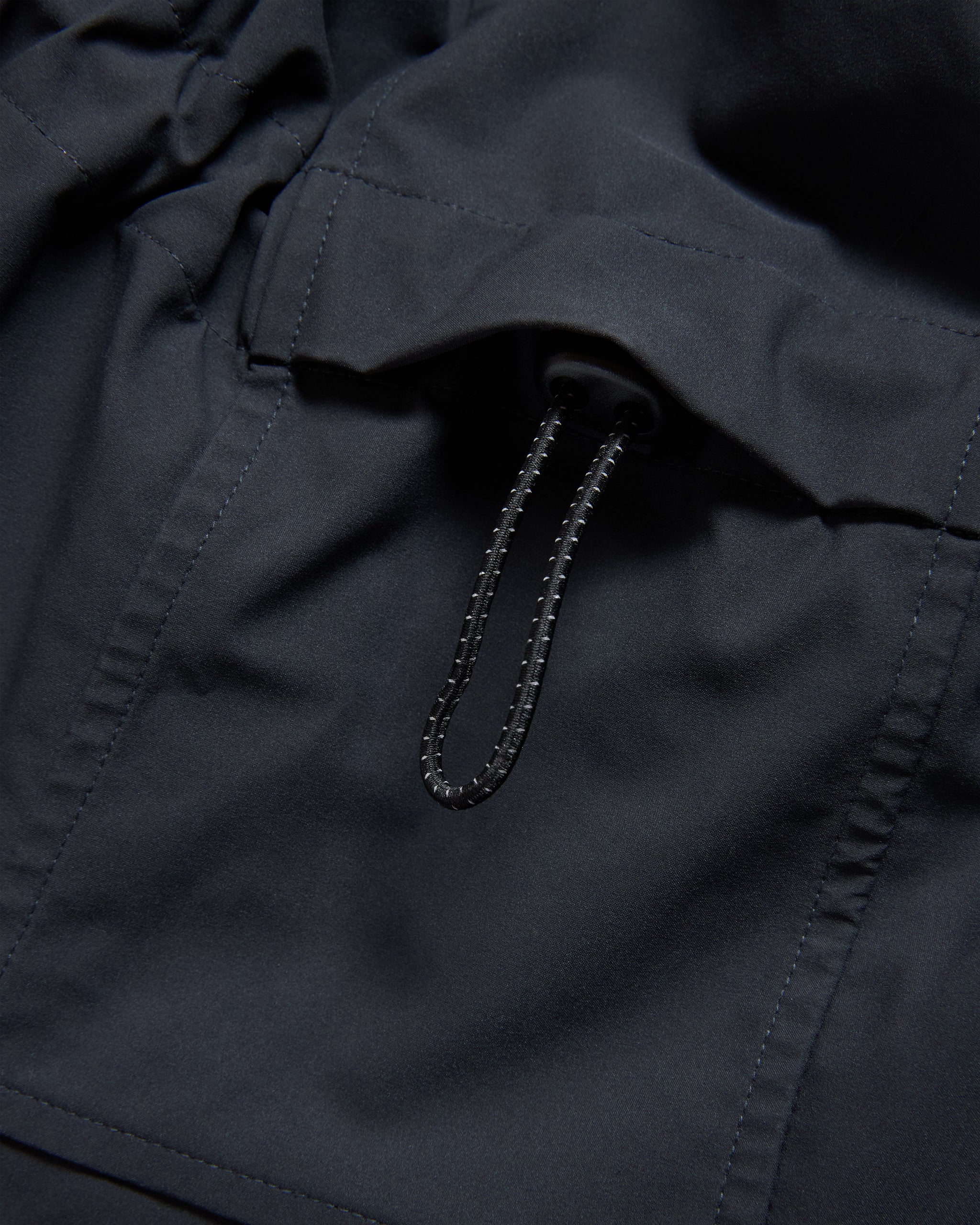 The Rainshadow™️ shell continues its evolution in both fabrication and detailing. Cut from a 3L bonded poly membrane fabric that is both water and windproof, this high performance shell features articulated chest and back cargo pockets for increased storage space, set-in seam zipper keeper channels, paracord zipper pulls with reflective 3M tracers and a hand carved wooden lotus bead puller at the center front.