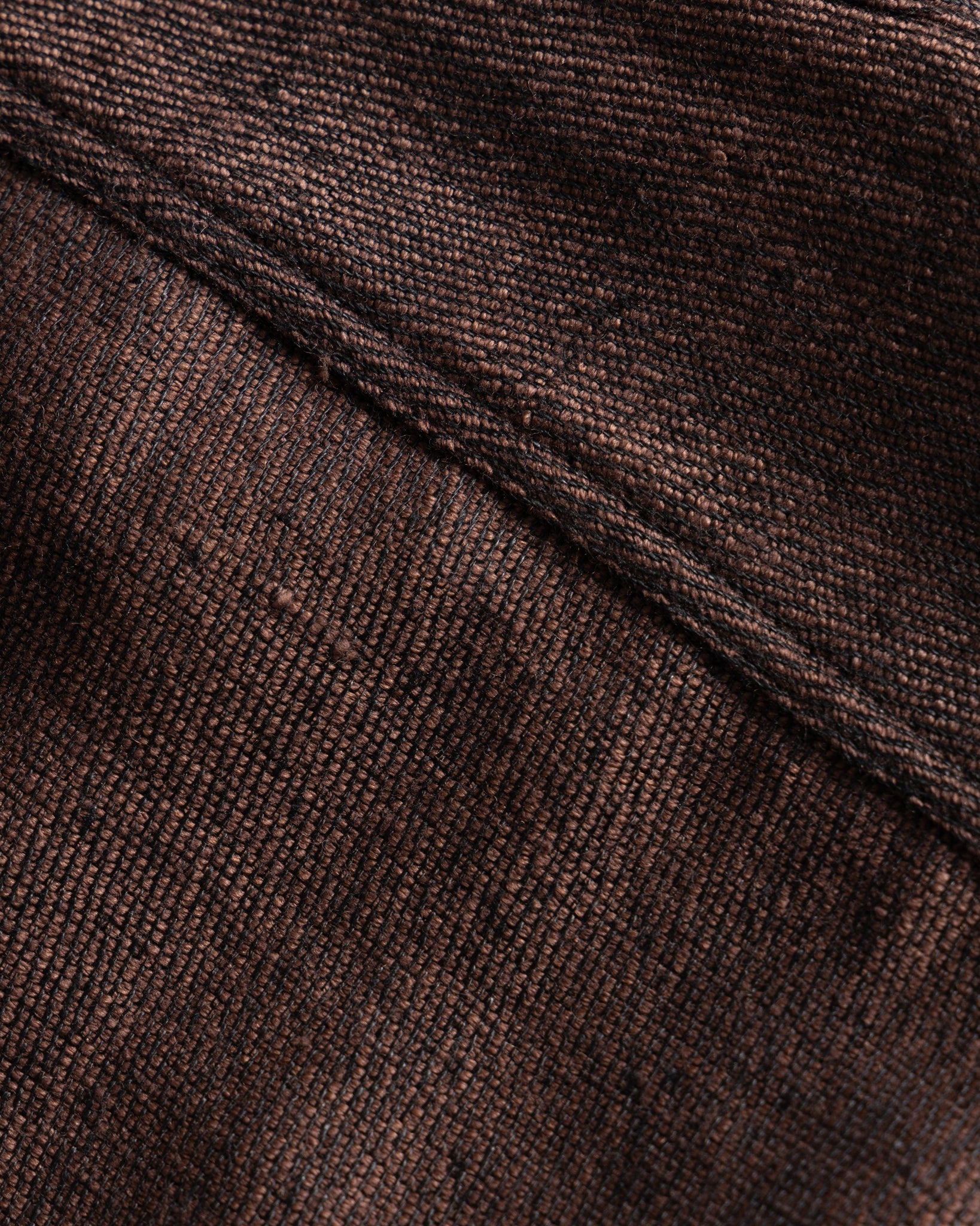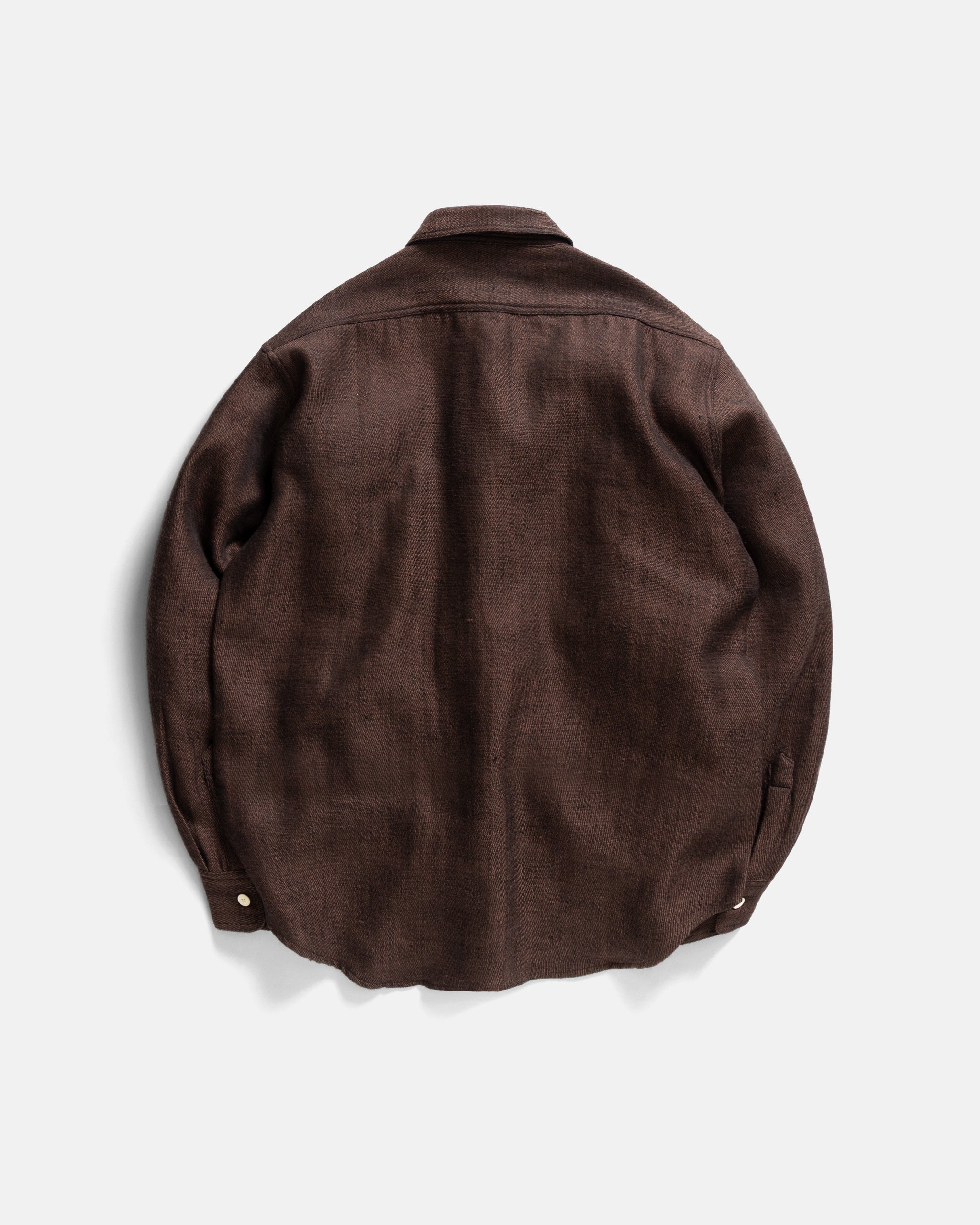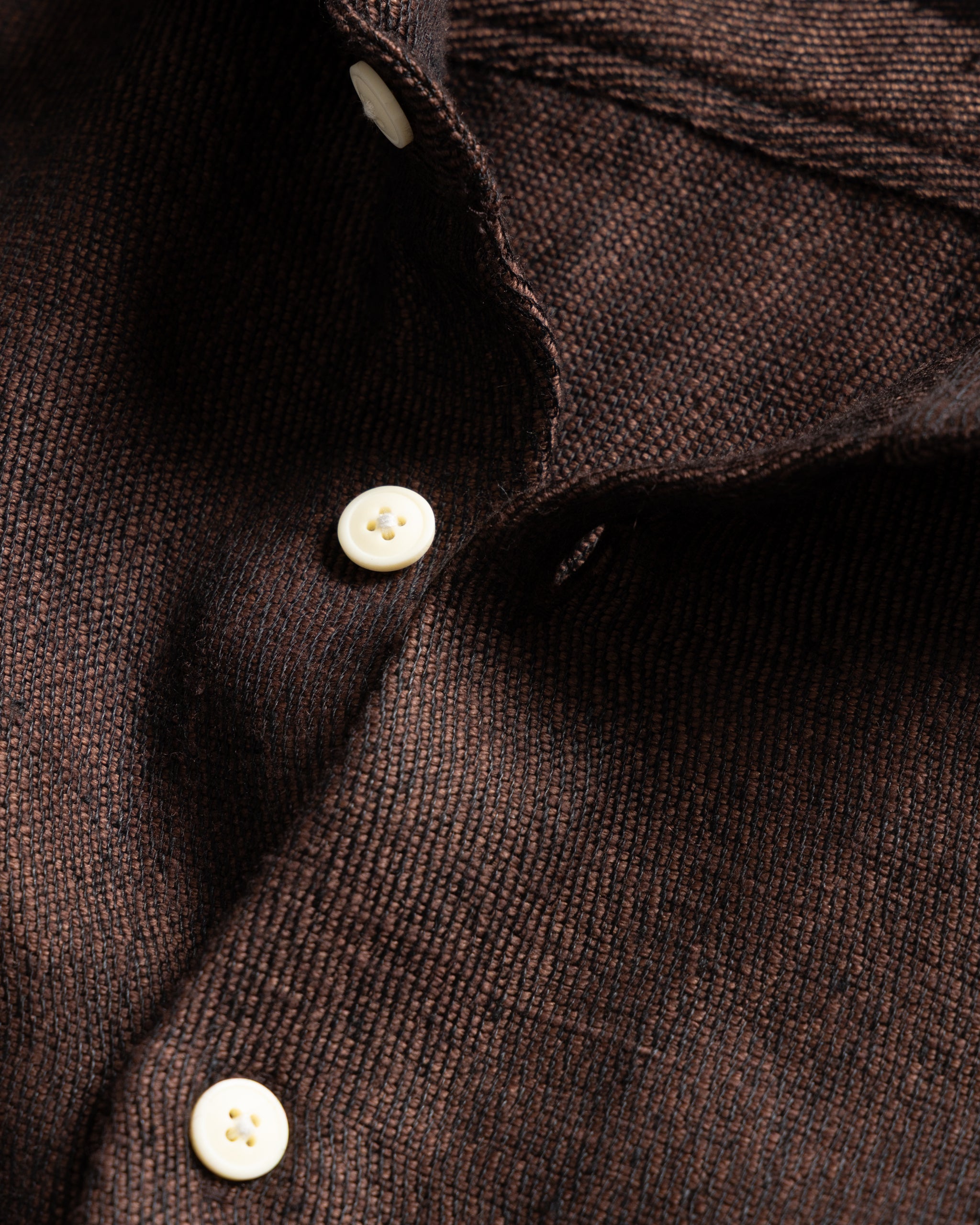 ALBERTO "PER LAVORO" SHIRT - CHOCOLATE / BLACK WOOL AND LINEN KHADI TWILL