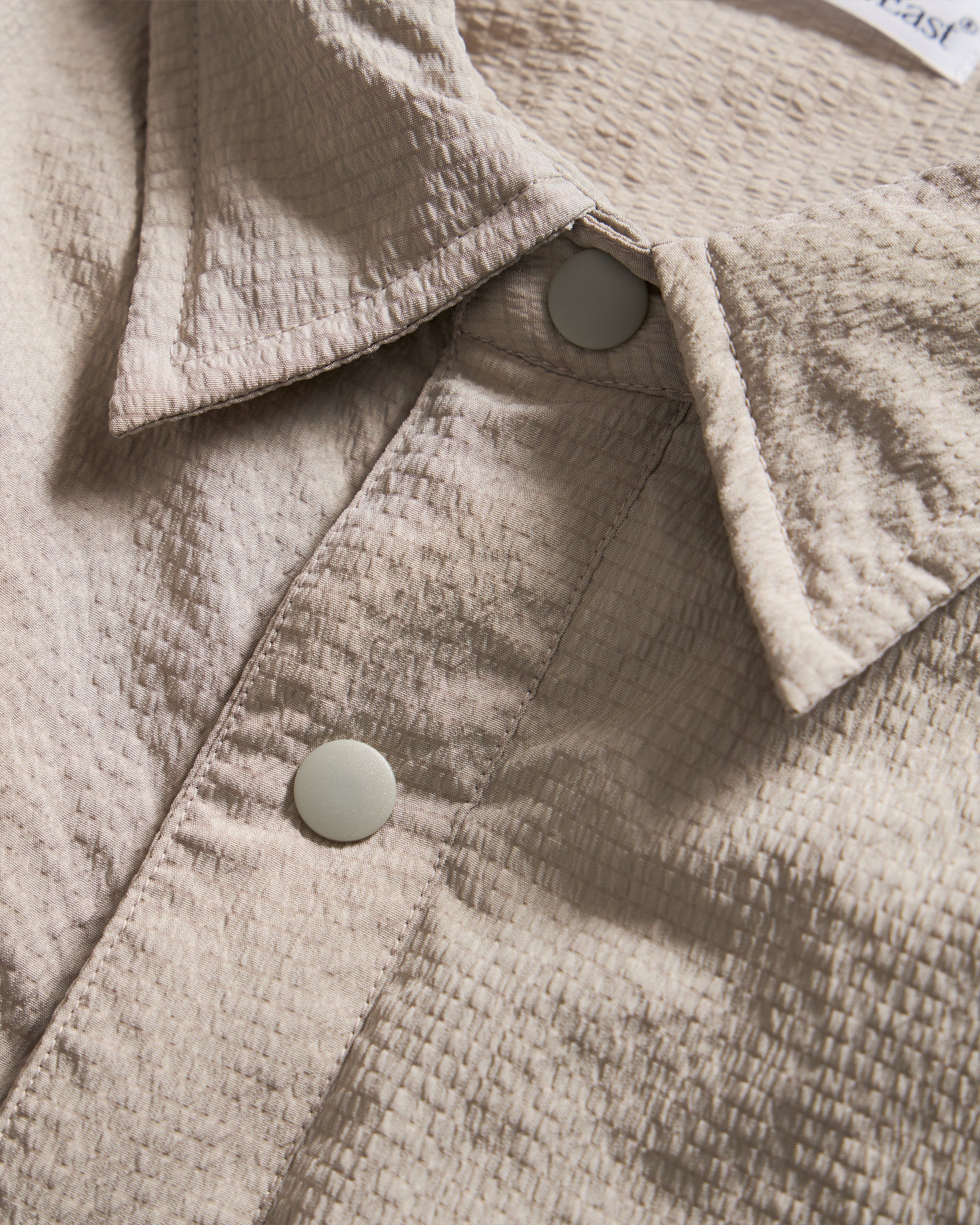 Cut from a textured nylon ripstop that mimics Rome's cobblestone streets, our newest iteration of our Easy Work Shirt is lined with a single layer of Italian Thermore™️ recycled polyfill. Made from recycled plastic bottles, Thermore fill is both extremely light and warm. It features a tonal KAM snap closure placket and two oversized chest pockets.