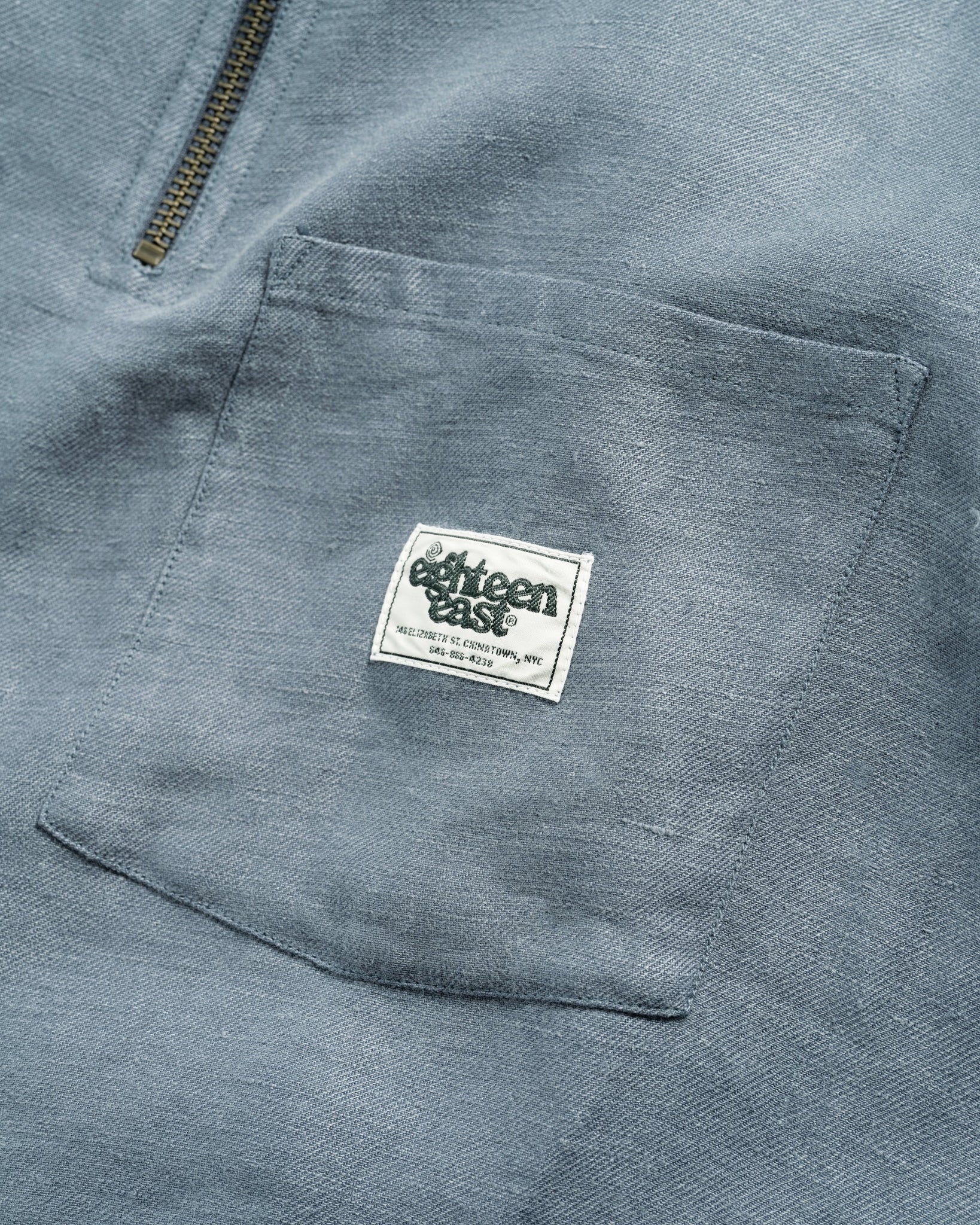 Our take on an enduring SF workwear staple, the Hollow 1/4 zip features two mitred chest pockets (with our Spiral 'E' workwear label at the left one) and an even, vented hem.