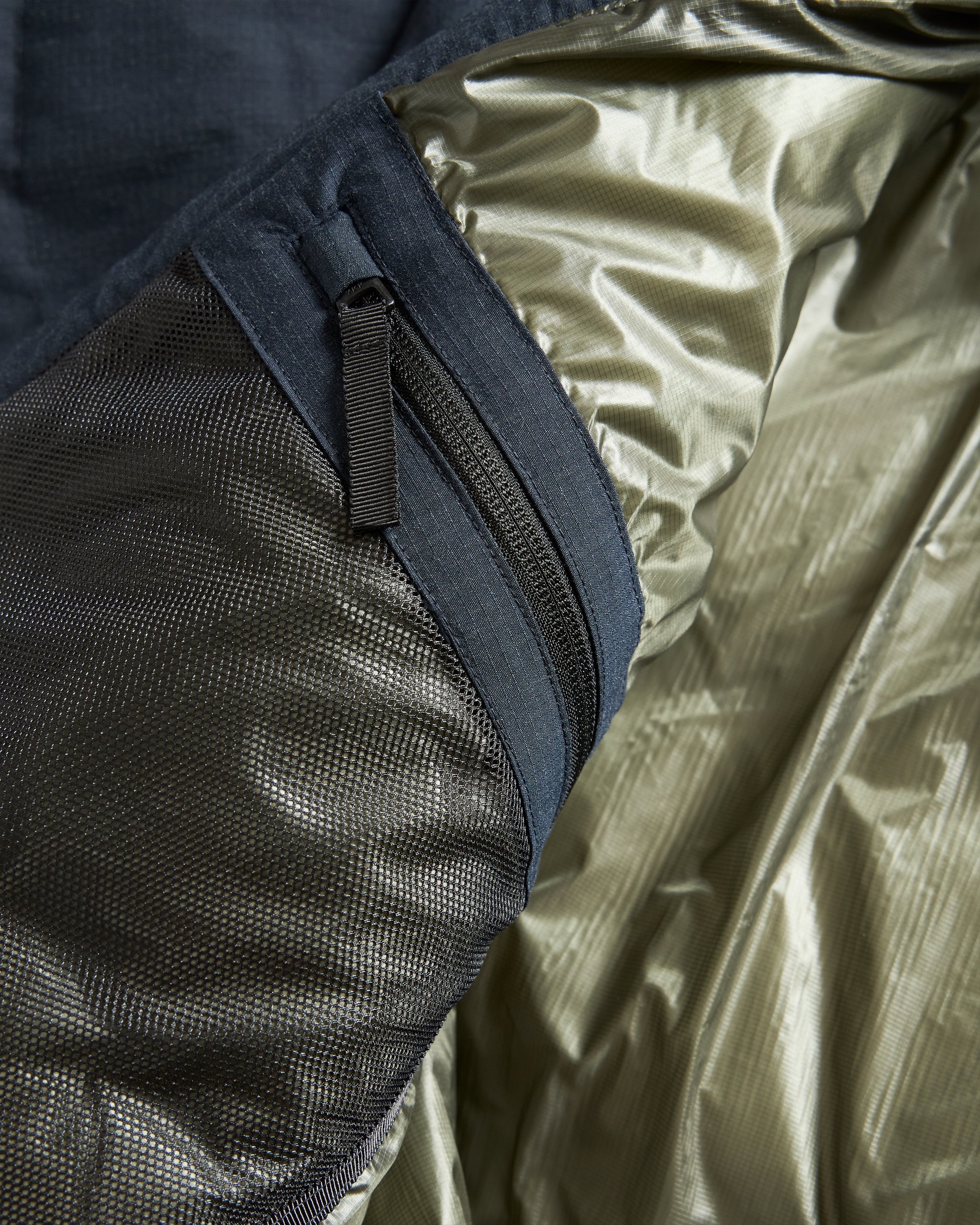 This winter, we iterated on our initial Lookout Jacket with a handful of updates we are very excited about. First, we ran back Nanga's flame-resistant aramid fabric - now called HINOC - but changed the weave to a textured melange ripstop. Silhouette-wise, we added an articulated down-filled hood and completely overhauled the exterior pocket system to feature 2 oversized applied chest panels with 2 pockets in each. These pockets are accessible by 2 large, heat-sealed 2-way zips. Lined in featherweight 10dn OD Green ripstop nylon and filled with a 770FP, 150g super water-repellent Spanish duck down, the jacket is full cut with raglan sleeves. It has a heat-sealed 2-way center front zip, hidden elasticized cuffs and two large interior cargo pockets.